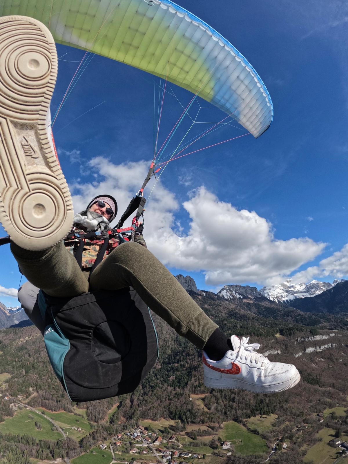45 minutes de bonheur dans le ciel ce mercredi 21 septembre 2022 Vue incroyable sur la montagne et le lac d'Annecy. Malgré le beau temps, il faisait très froid, gants, bonnet et polaire + manteau sont nécessaires ! Merci à Pierre (Monsieur prudent ;))pour ce vol où nous avons pu monter jusqu'aux nuages au-dessus de la montagne ! Ravie d'avoir pu prendre le pilotage pendant quelques minutes. C'est vraiment une expérience magique, bon sauf pour l'atterrissage où là je me suis vautrée en tombant sur les genoux mais rien de bien méchant ! Bon à savoir, vous pouvez vous garer gratuitement devant le bar le Plancher des Vaches et la boutique des Passagers du vent. Les autres places en arrivant sont payantes !