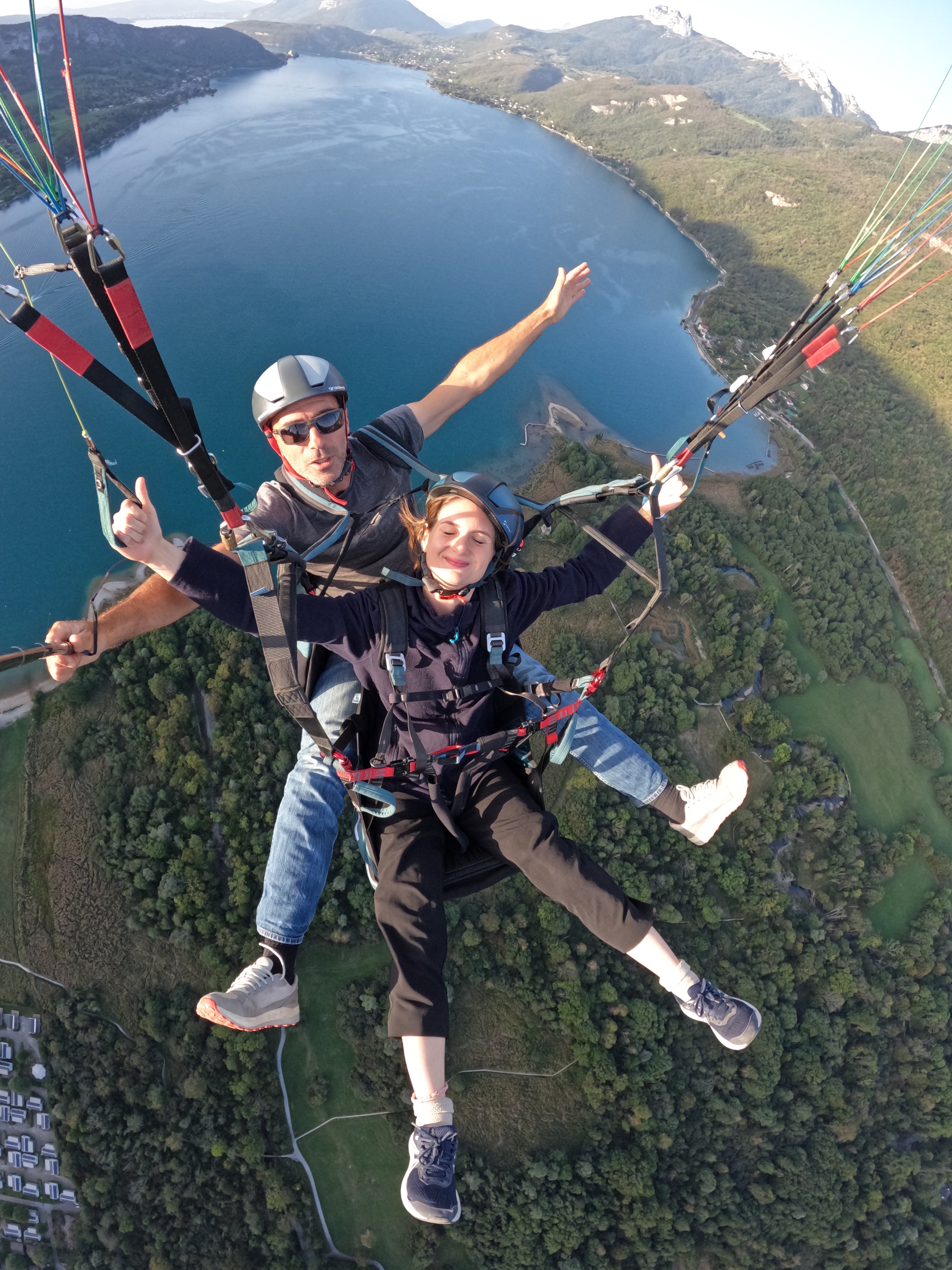 Une belle expérience avec une vue incroyable sur le Lac d’Annecy et nos belles montagnes. Les moniteurs sont top et en plus ils nous apprennent tout un tas de choses sur le vol en parapente !