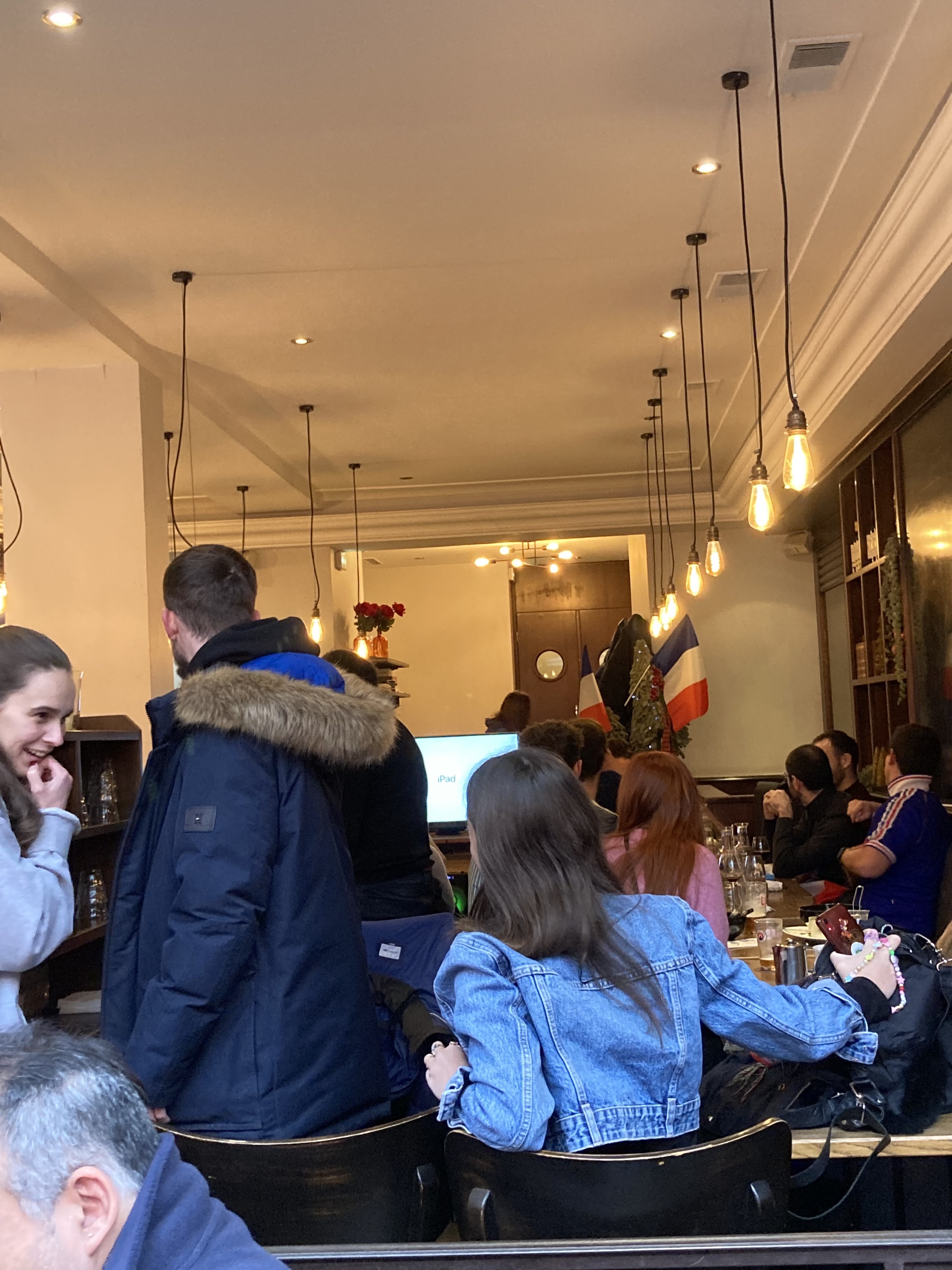Le lieu est beau en face de la Sorbonne sur la place. La nourriture est plutôt bonne , frites maison . Pour un bistrot c est top. Le serveur était très gentil et serviable.
