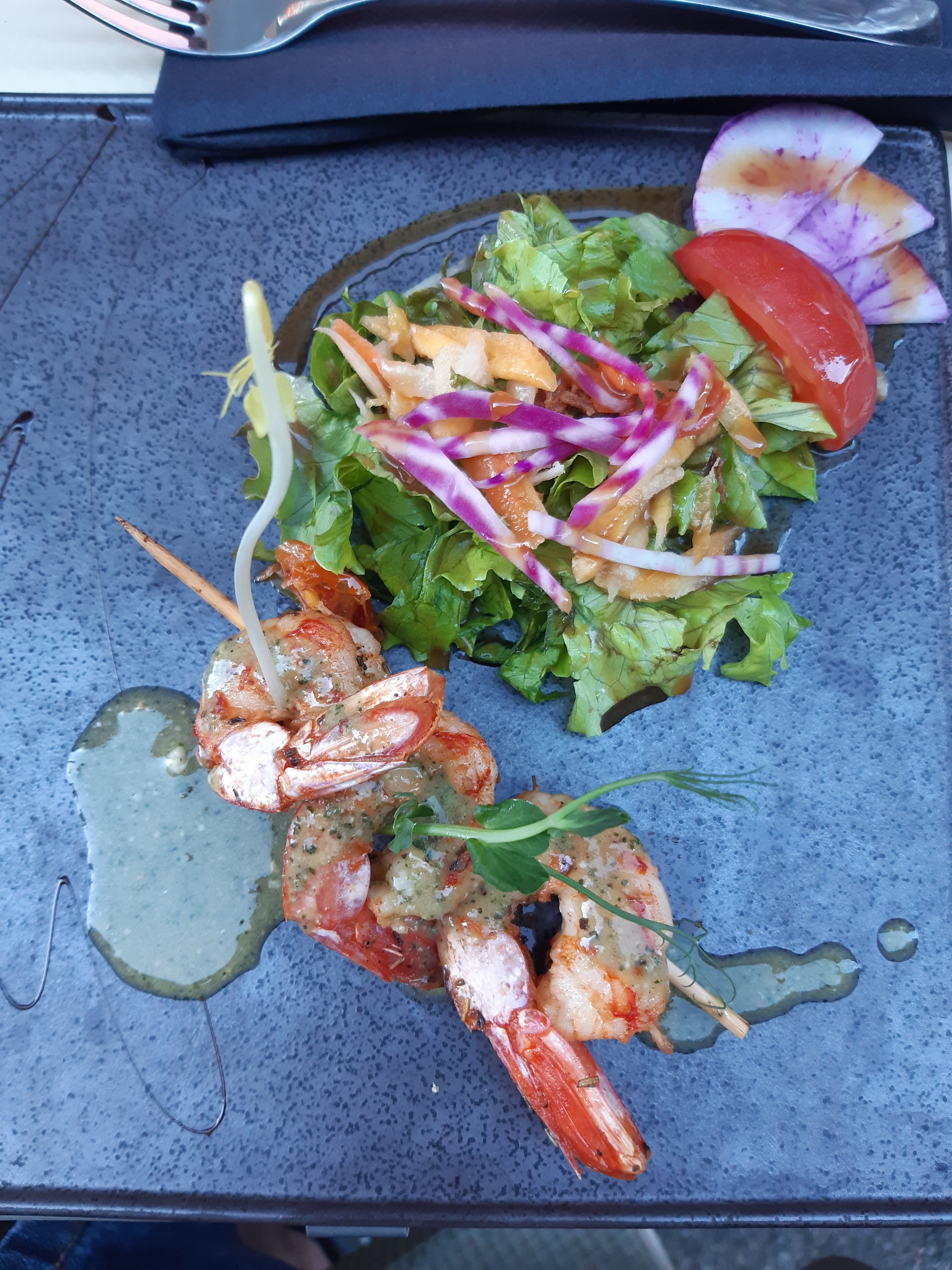 Cuisine inventive (mention spéciale pour la cassole de gambas safranée !) mettant en avant les produits locaux. Un accueil chaleureux, un service rapide, efficace et avec le sourire ... Bref tout était parfait, on reviendra 🙂!