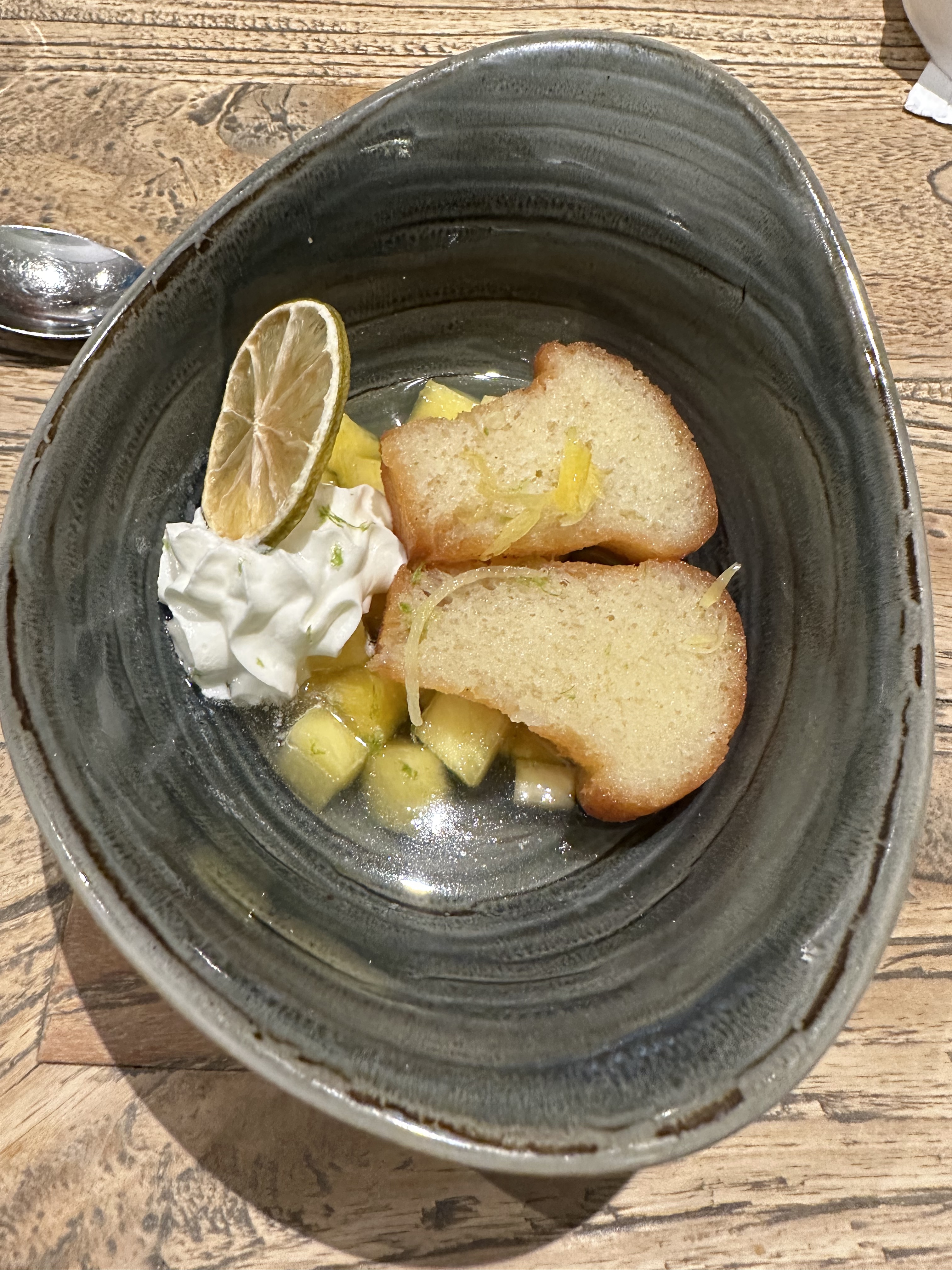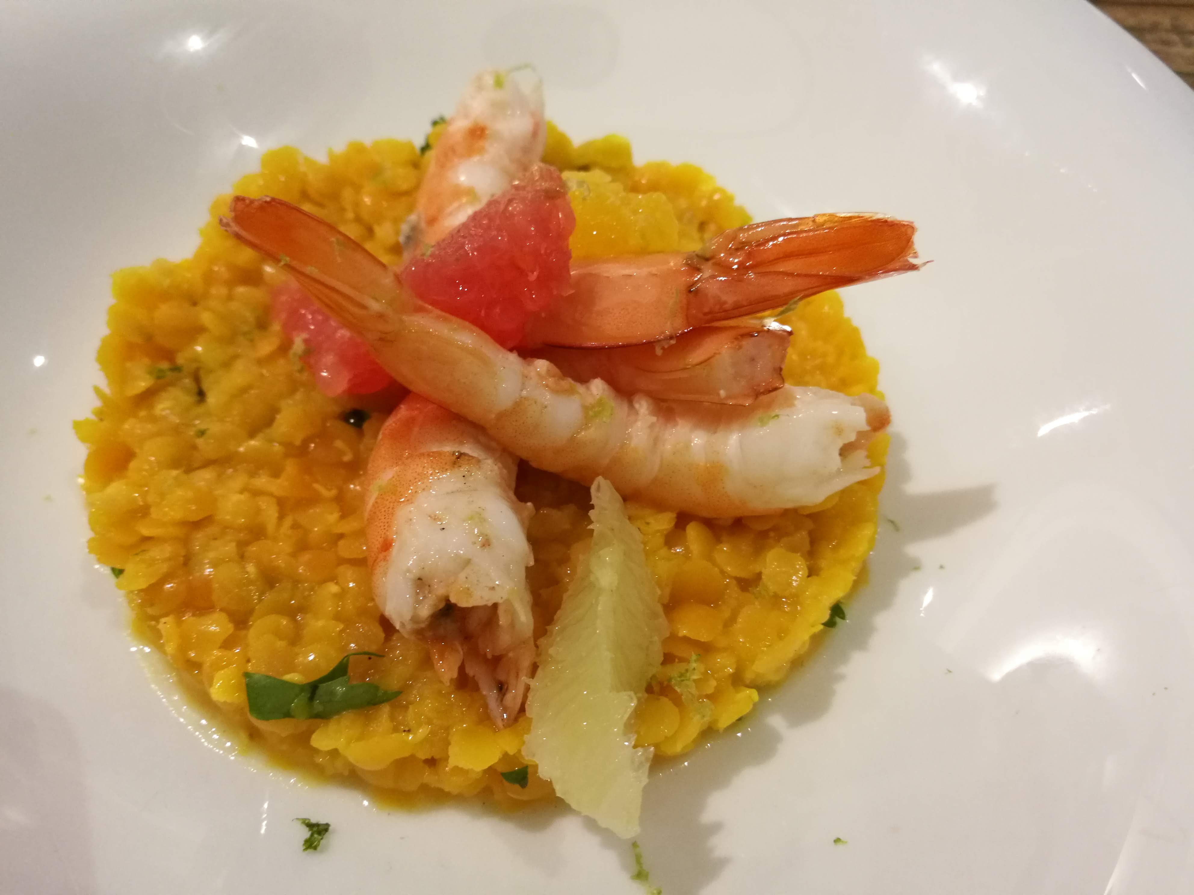 Une entrée fraîche épicé comme il faut top et un plat délicieux un poisson cuit parfaitement👍 Dommage de finir sur un dessert sablé breton bof avec une compotée xhutney pas top..