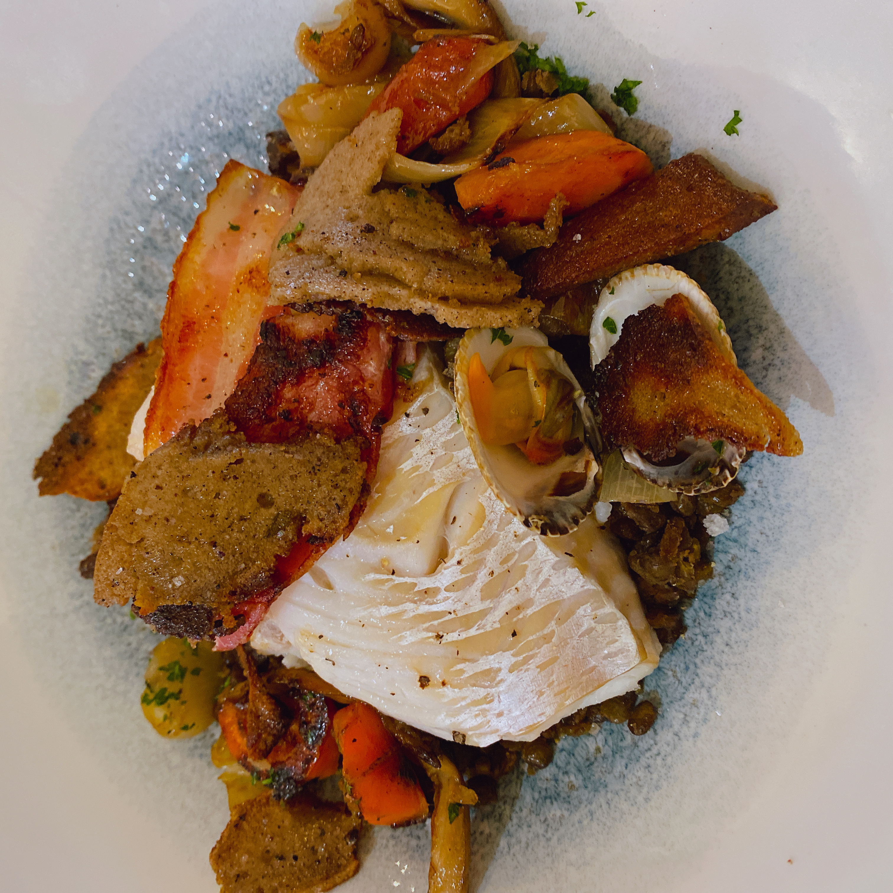 2 étoiles pour être sympathique, l'équipe du service à la dérive , huîtres mal écaillées , bigorneaux limites, amandes floteuses. Ce moment de fête a été triste...😭 ➕️ le découpage du poisson, une boucherie. Bof bof, nous ne reviendrons plus