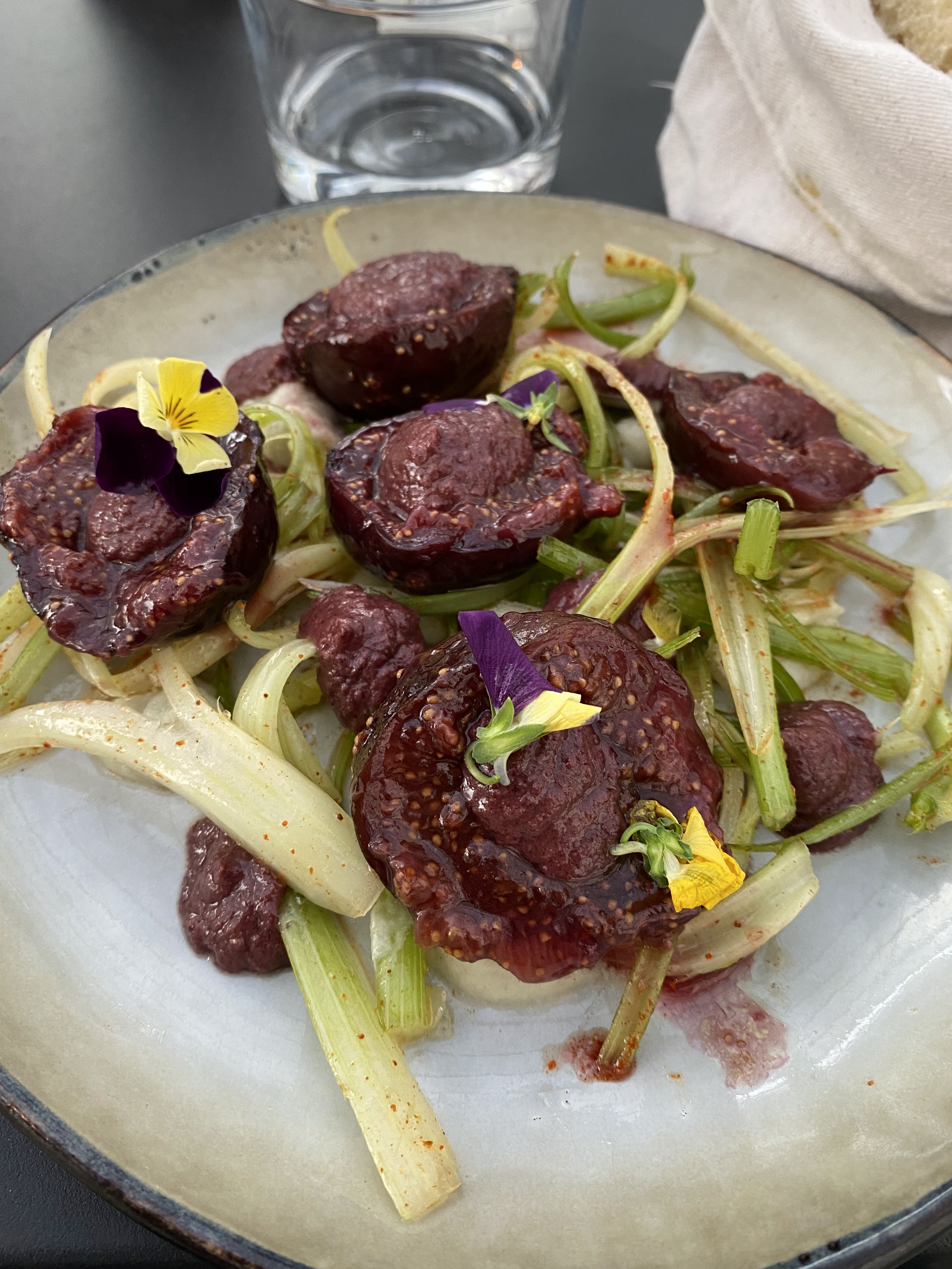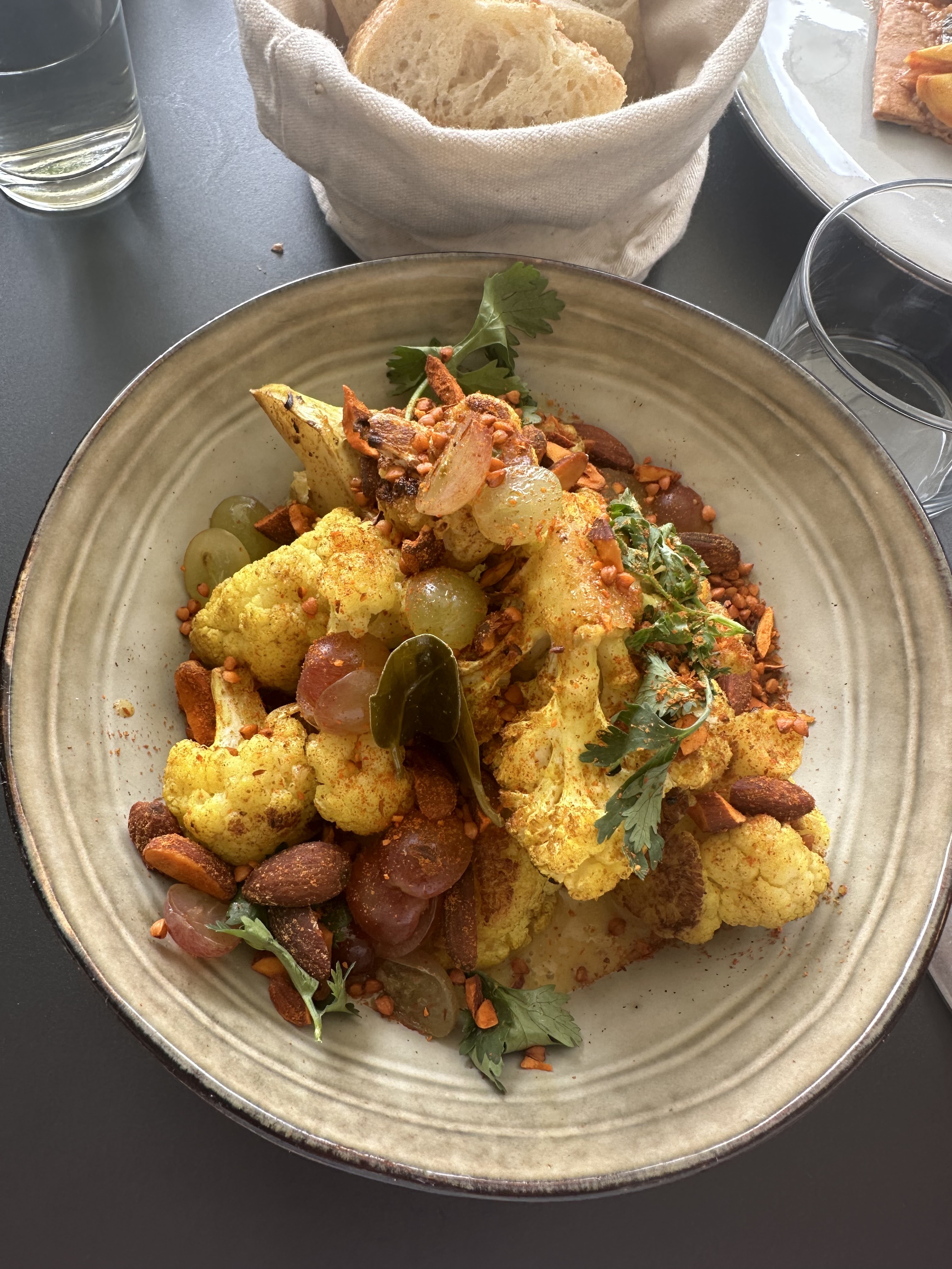 Les figues en entree très bonnes, les choux fleurs rôtis étaient bons mais le dessert aux fraises décevant, a certainement pris un coup de chaud.