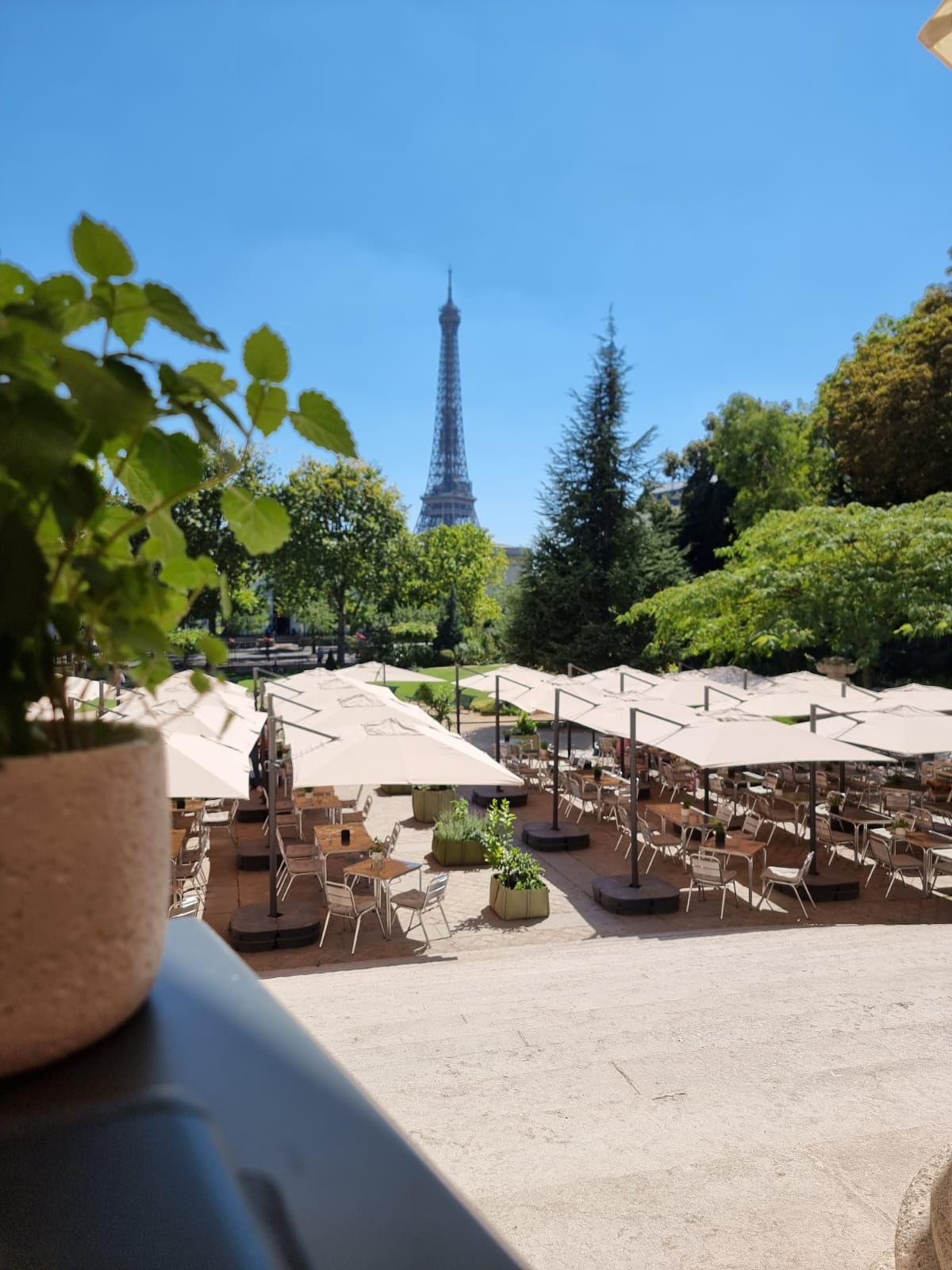 Très beau lieu éphémère. Vue sur les jardins et la tour Eiffel. Une étoile en moins pour les toilettes à ne pas fréquenter☹️
