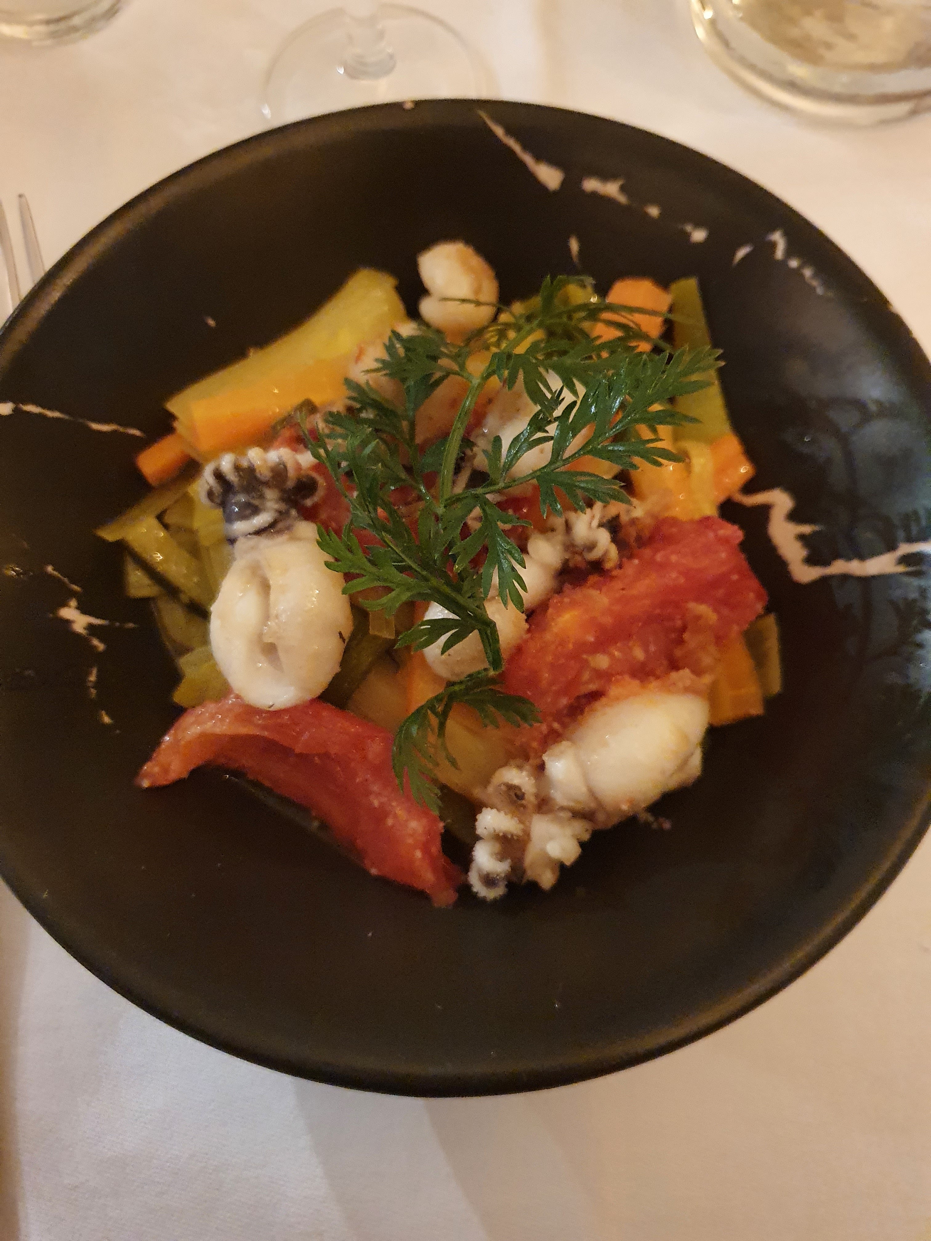 Excellente soirée en amoureux, nous avons été tous les deux très bien accueillis et servis ! Végétarienne, il m'a été proposé un plat spécial car aucun n'était proposé au menu, et je me suis régalée ! Les assiettes sont si joliment présentées qu'on ose à peiner commencer à manger. La patronne a été adorable, aux petits soins, elle s'est assurée tout au long de la soirée de notre satisfaction ! Nous reviendrons certainement 🤗