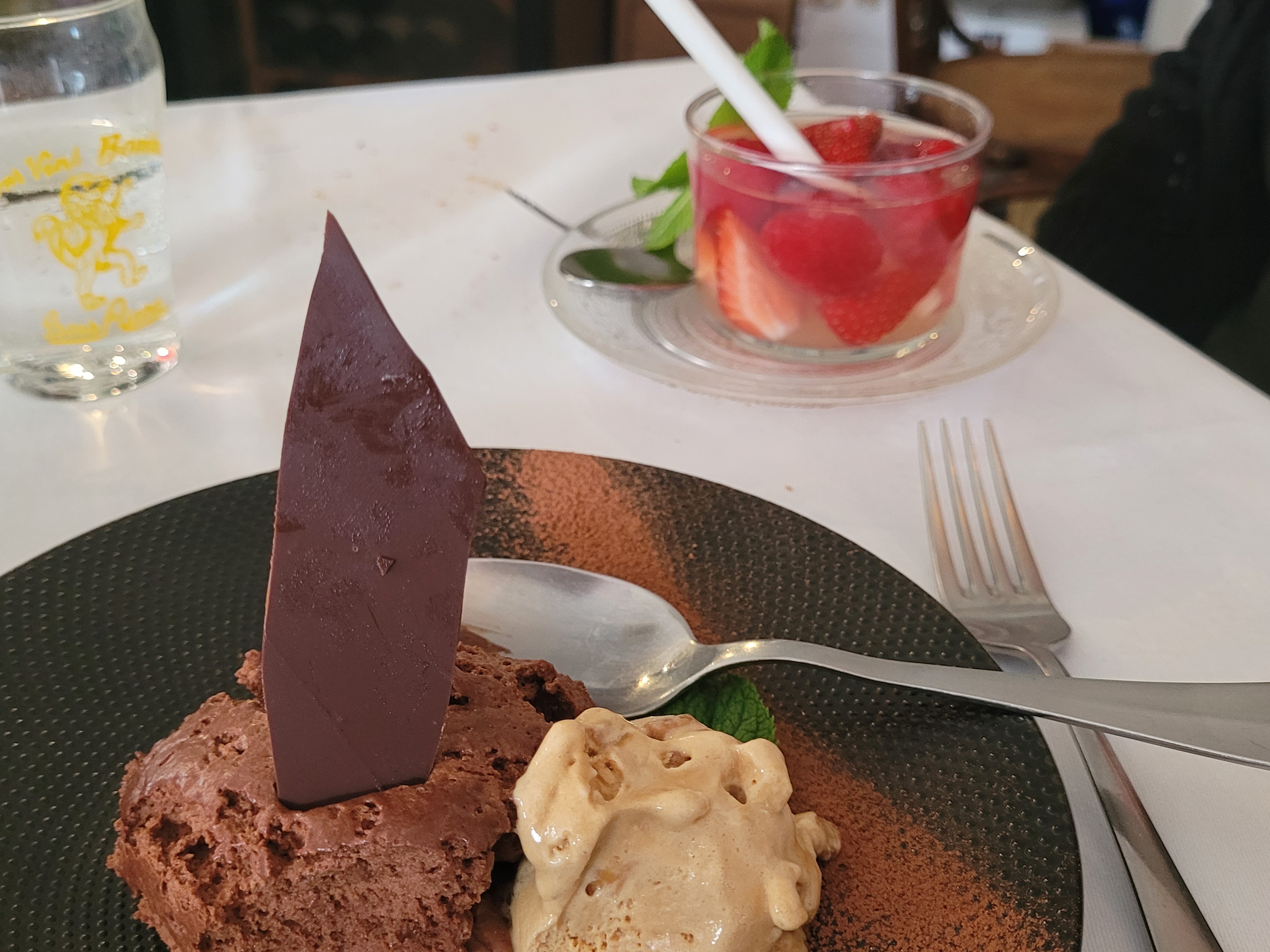La patronne n'était pas vraiment disponible pour les clients. Elle était très occupée avec 2 amies venues dîner dans son restaurant. Quant aux plats, rien d'exceptionnel, l'entrée était limite et le plat juste correct. Heureusement que la dessert au chocolat était très bon. Aucune attention de la part de la patronne du début jusqu'à l'addition. C'était très décevant.