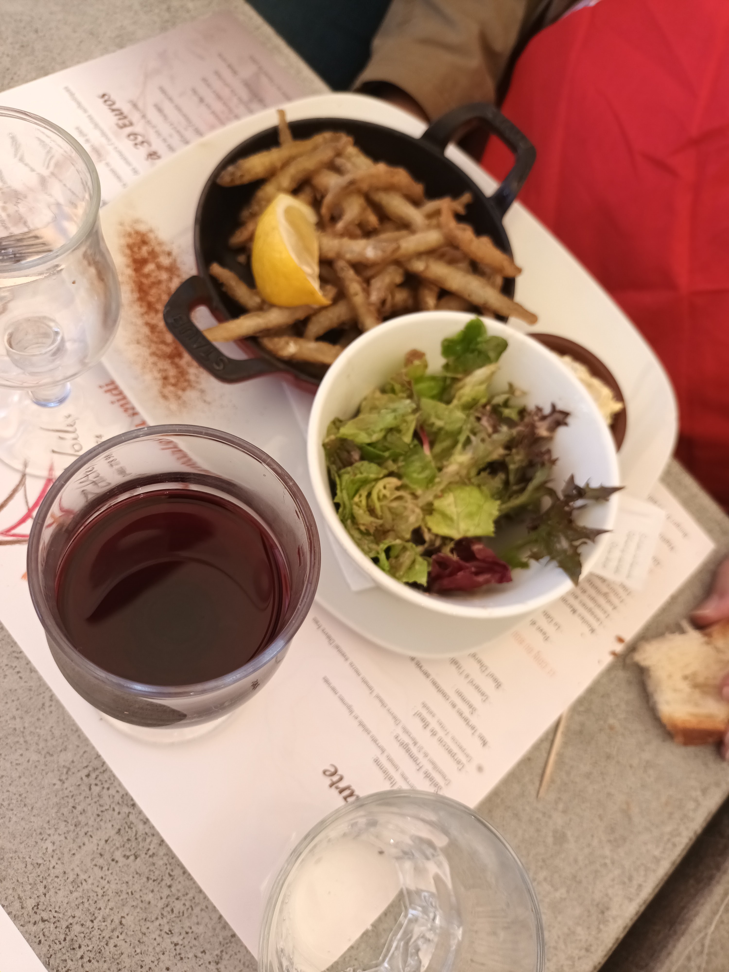 + le service a ete correct( serveur avec un discours pas tres vendeur mais je mais ca sur le compte de son jeune age) + le cadre tres joli et vivant - - - j ai pris de la friture d eperlan selon arrivage j etait tres decue de decouvrir que c etait du congelé vraisemblablement, pas cuit correctement( cela manquait de croustillant et c etqit vraiment pas bon en texture ). Je l ai signalé au serveur. Noud avons etait 3 a prendre ce plat et tous les 3 avons trouvé la friture pas bonne. J etait decue et je suis partie en ayant un petit creux.... heureusement, la glace etait pas mal. Dommage pour cette premiere experience chez vous. J espere que mes precisions seront constructives en tout cas.