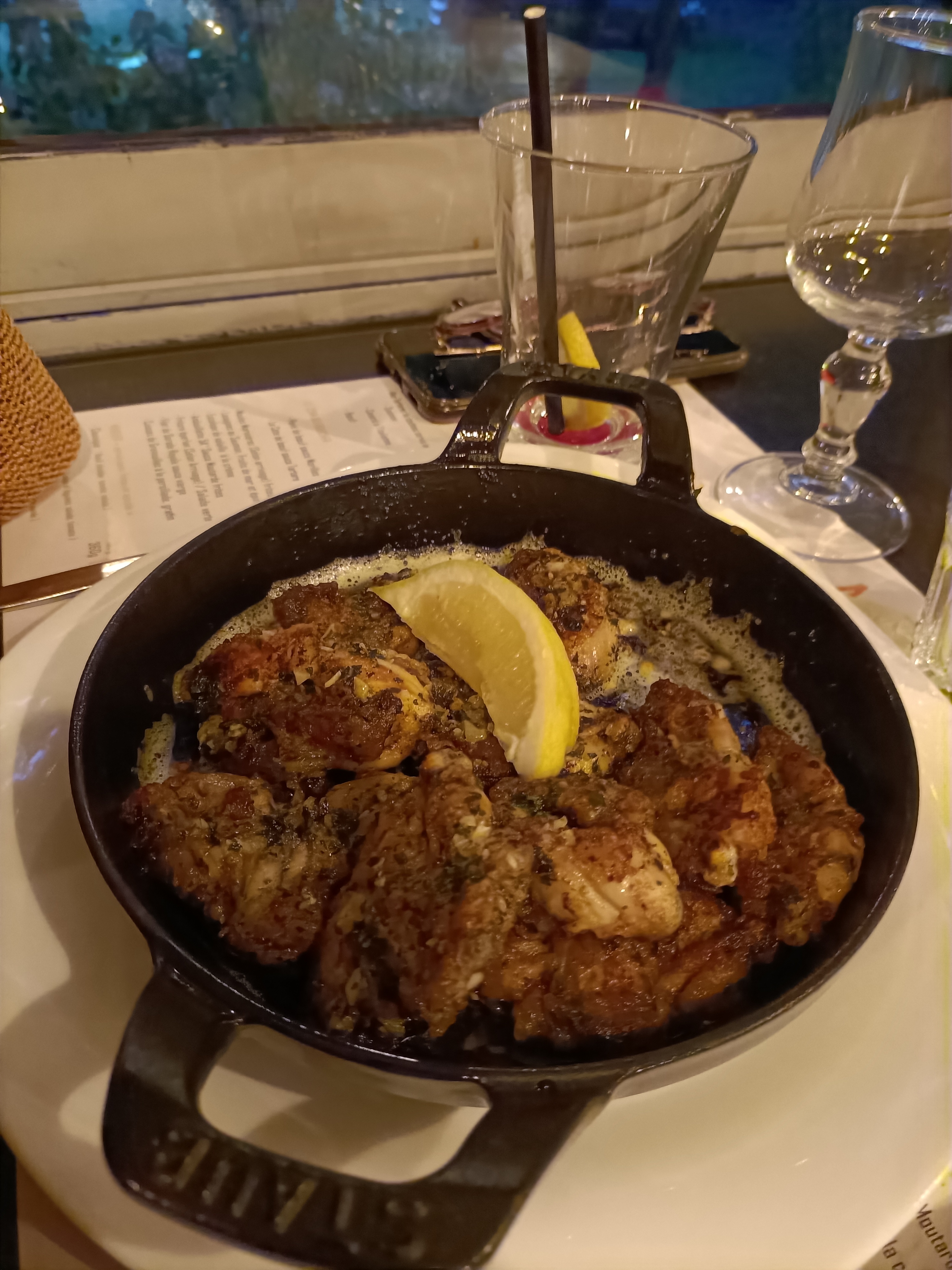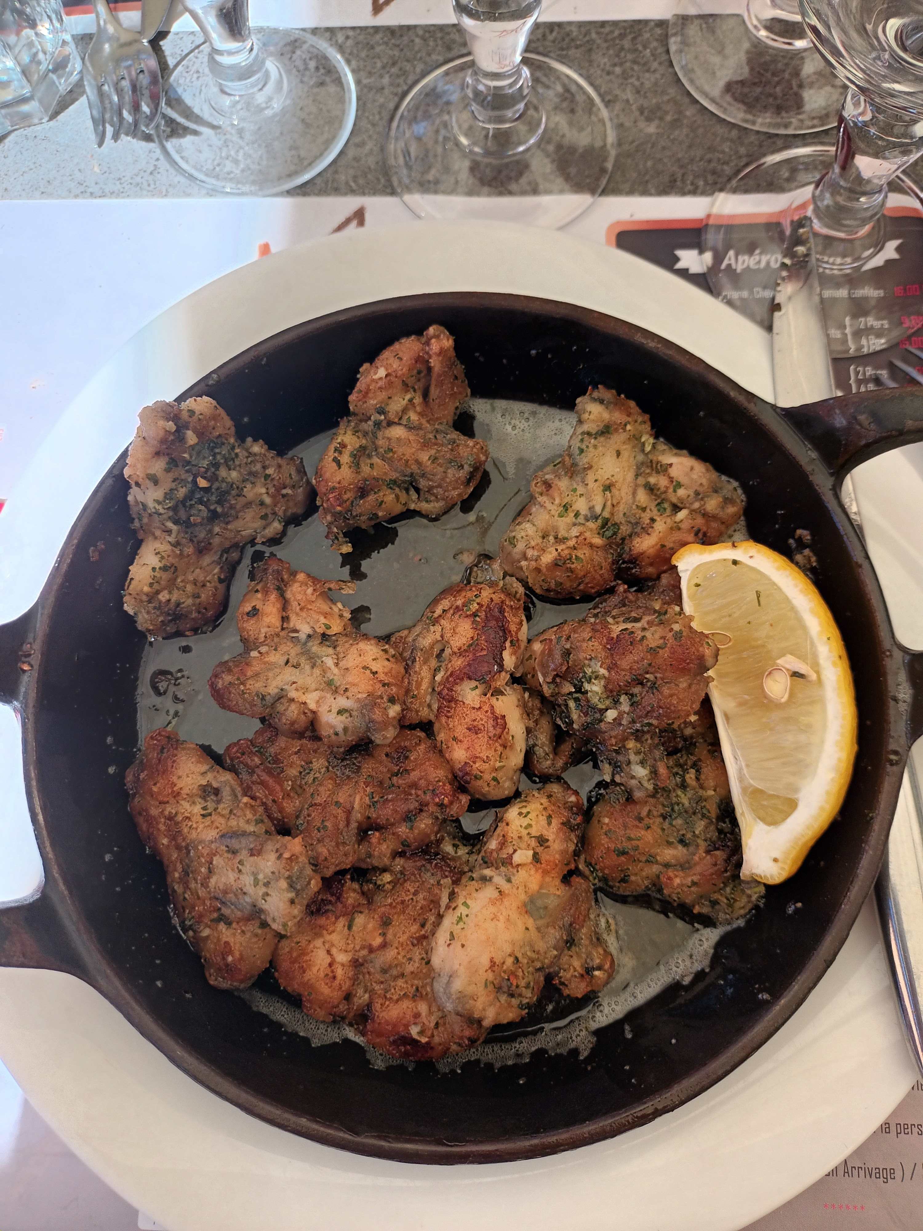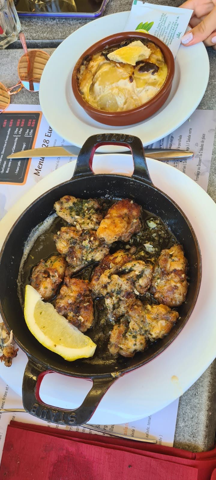 J ai pris des grenouilles mais j ai été un peu déçu . Pas assez goutues, il manquait le côté frits et aussi manquait de persillade. Mon amie qui adore les grenouilles les a trouvées sèches. C est accompagné d'un petit ramequin de gratin de pommes de terres qui avait bon goût mais pas un joli aspect. Au final, c est un peu cher pour ce que c est. On paye sans doute le cadre qui est plutôt sympa. Sinon rien à dire pour le service. Au final, je ne suis pas sûr de revenir. Pas mauvais mais pas extra non plus.