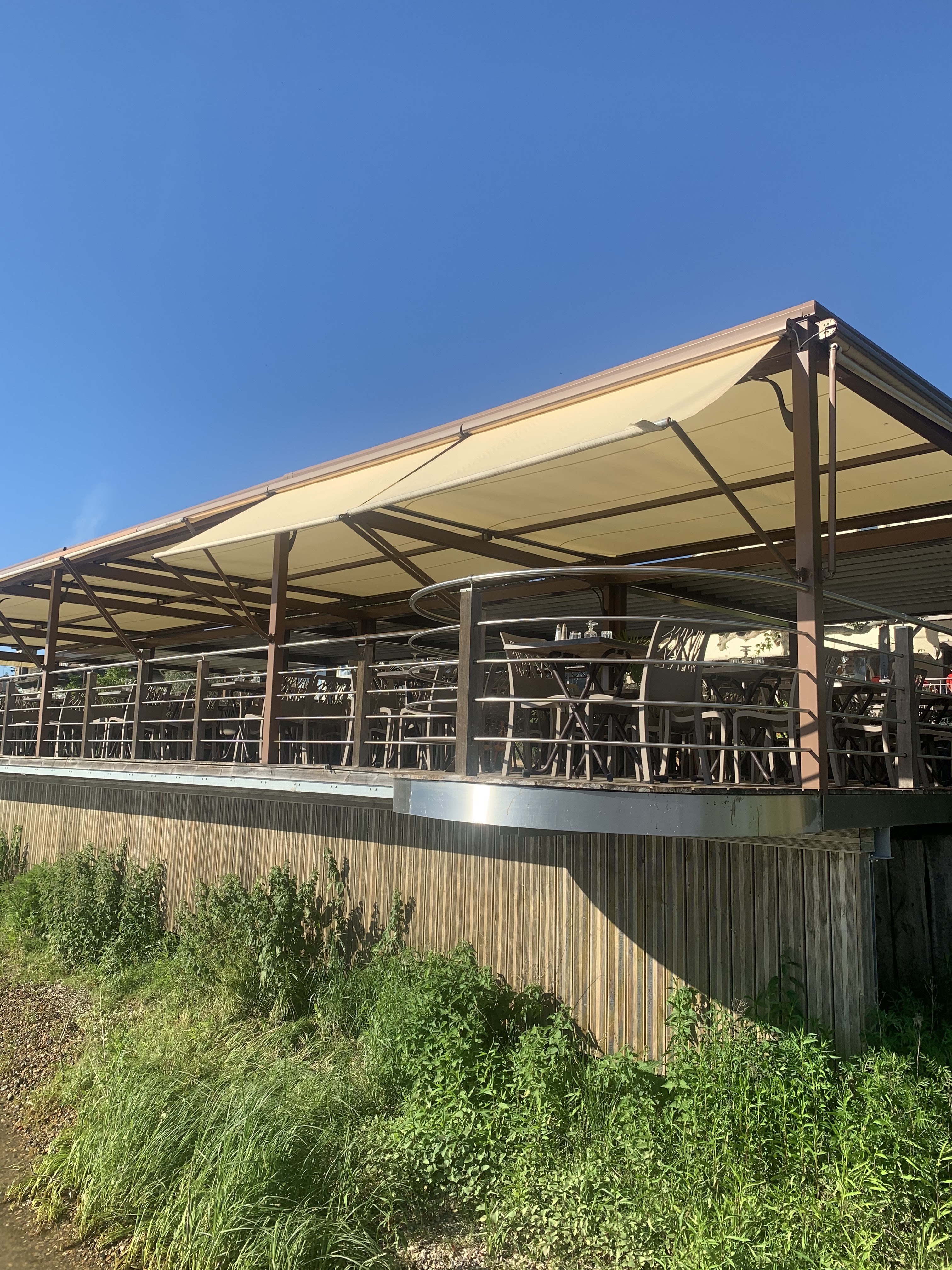 Terrasse abritée vraiment sympa , vue sur la Saône et le repas fort satisfaisant. Les serveurs et serveuses à votre écoute. Un bon dimanche dans ce restaurant. Merci