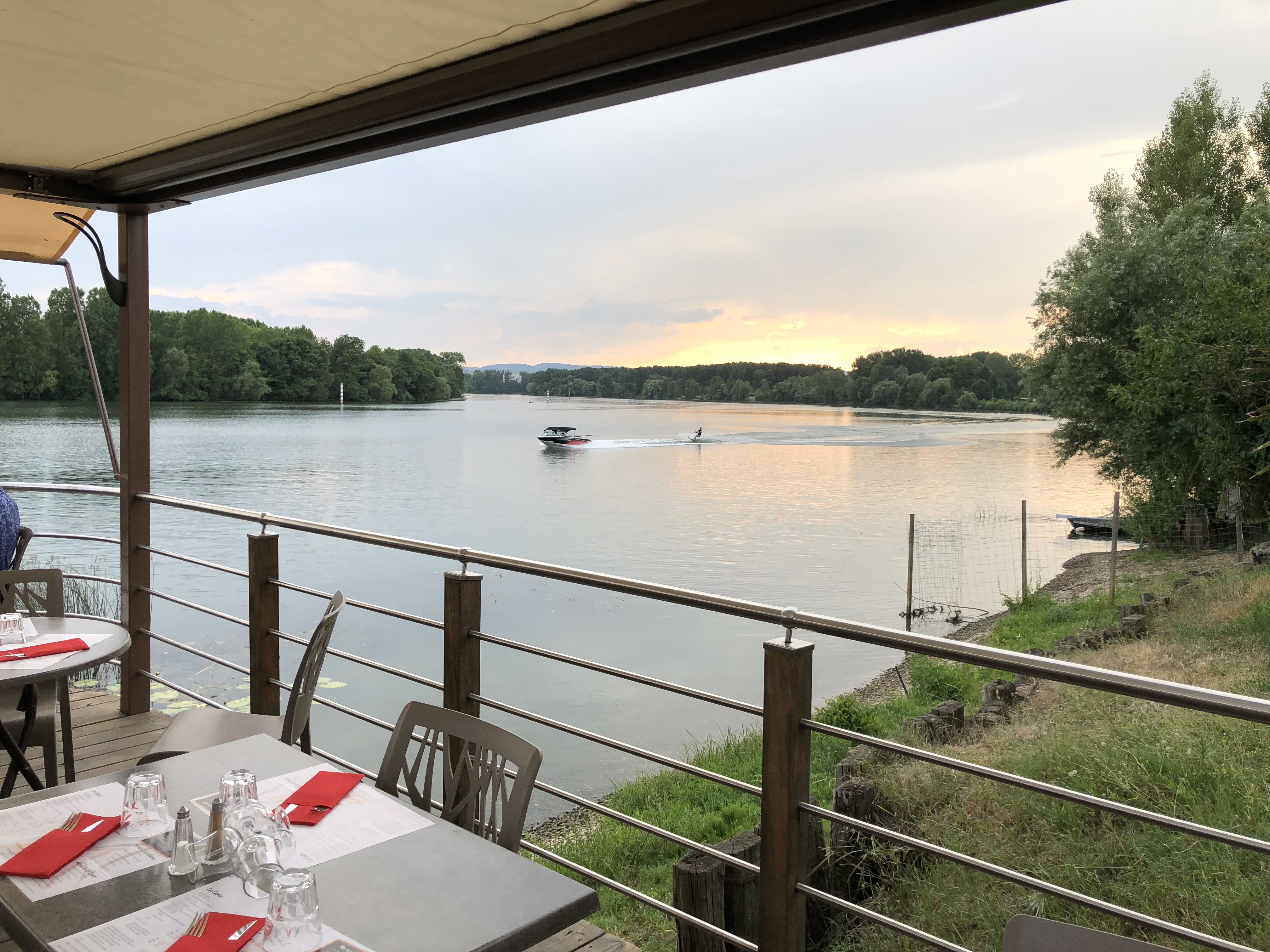 Belle terrasse en bord de Saône (rive gauche) avec ponton si vous venez en bateau. Personnel adorable et carte simple mais efficace. Deux menus (28 et 38) soir et weekend. Ambiance décontractée à quelques kilomètres seulement de Lyon. Je recommande !