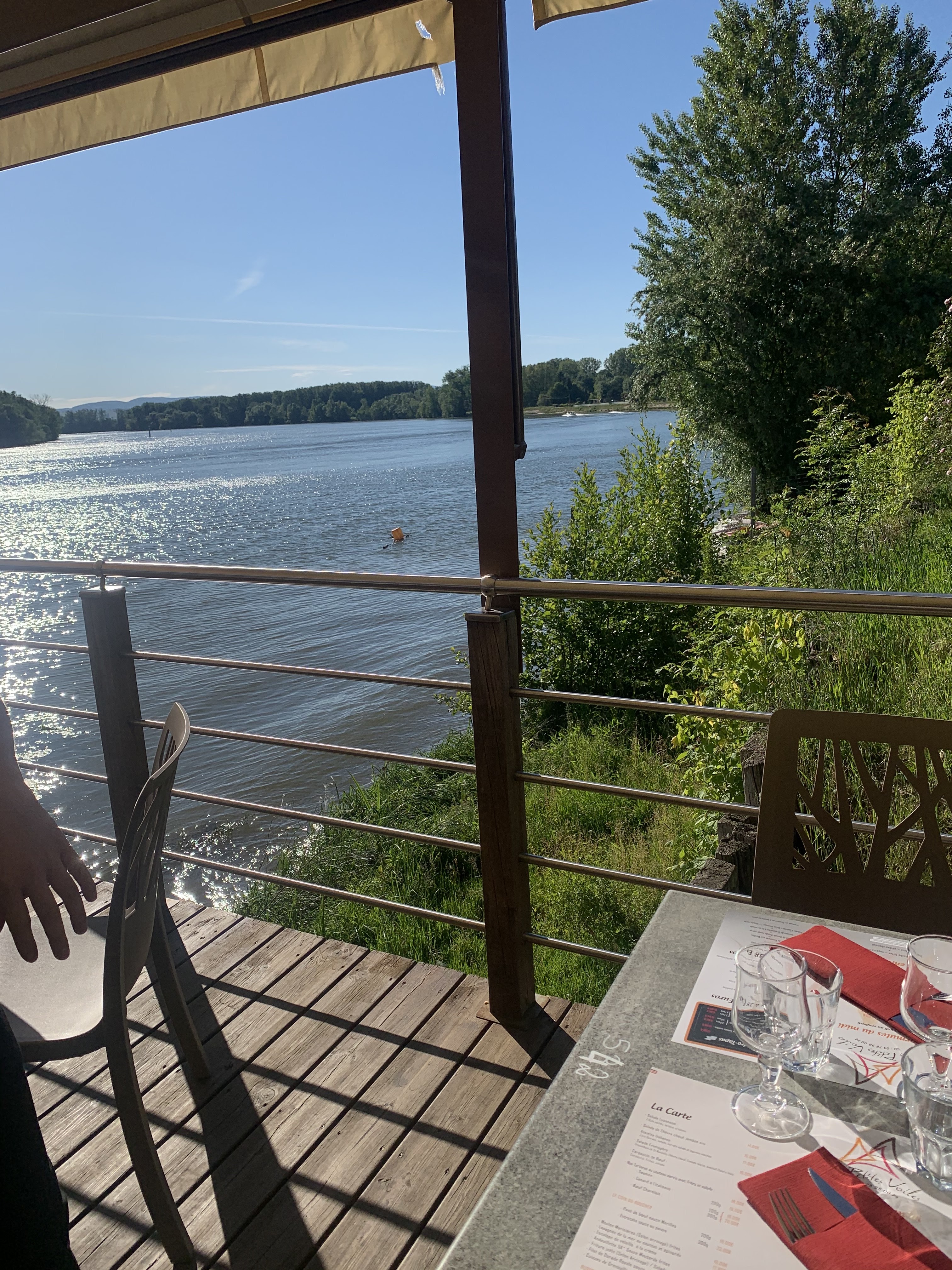 Quand le temps s'y prête ne loupez pas cette terrasse des plaisirs, vue dominante sur la Saône, ses poissons et cygnes, un excellent accueil, un service efficace, jeune et sympathique, une cuisine toujours régulière dans la qualité, des vins corrects et une note raisonnable : quoi demander de plus ? Pensez à réserver...