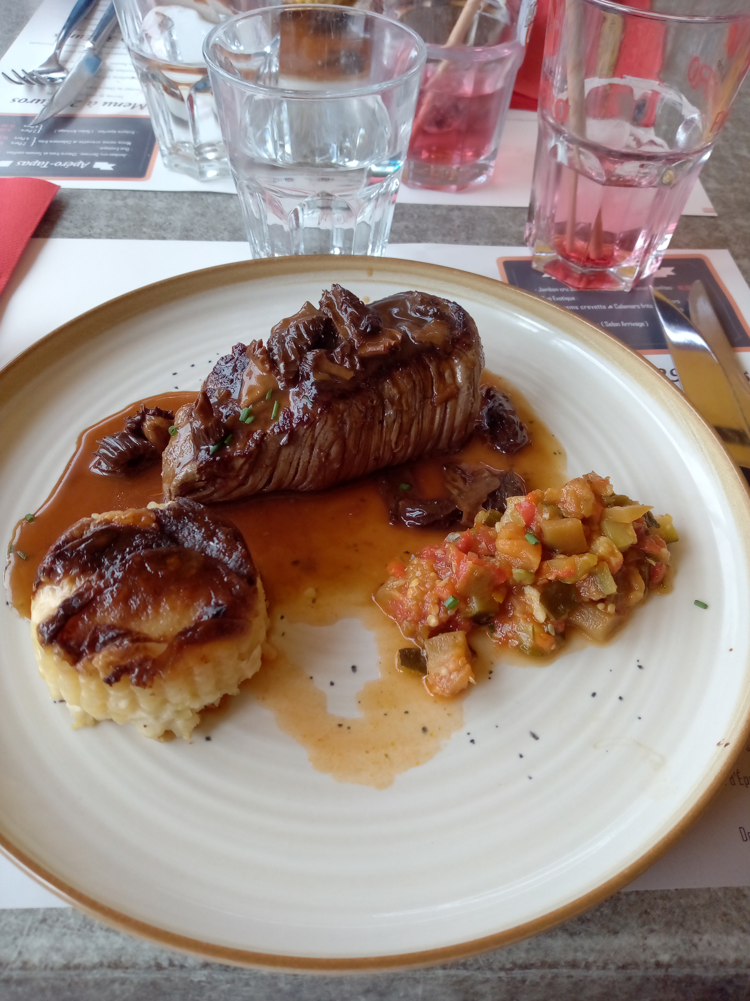 Bon repas, bien cuisiné, service rapide voir un peu trop en ayant l'apéro et le premier plat servi en même temps. Tarifs dans la moyenne haute. Cadre excellent, petite marche pour accéder le parking n'étant pas a proximité mais rien de grave. je recommande vivement cet établissement