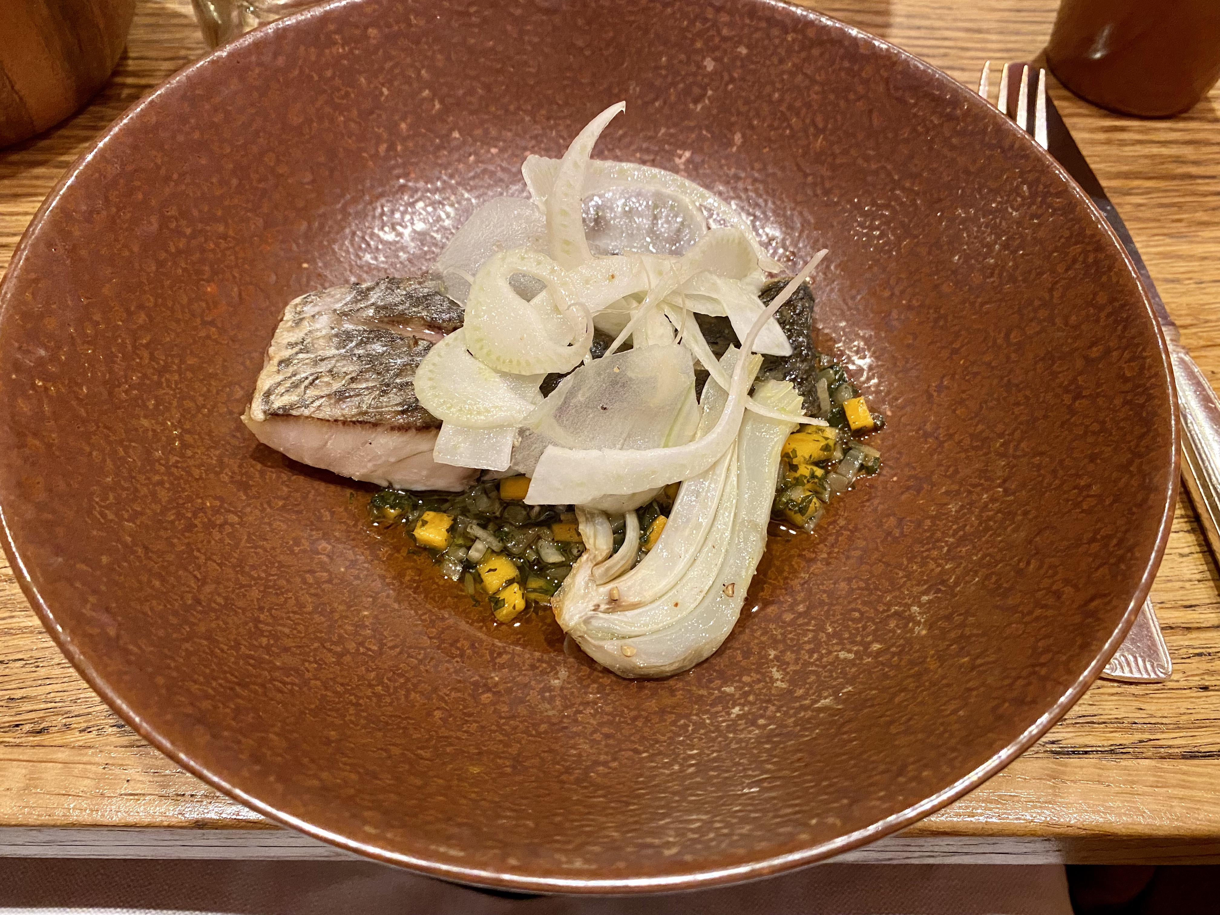 La cuisine est raffinée et bien exécutée mais ça manque cruellement de professionnalisme en salle… Service oppressant qui manquant même de savoir être. On vous presse au choix alors que le resto est rempli au tiers, on discute le choix des clients sur le vin de façon insistante, on vous débarrasse à peine la dernière bouchée avalée, on vous pose assiette et couvert un peu à l’arrache, bref ça dénote. Dommage car la cuisine est intéressante.