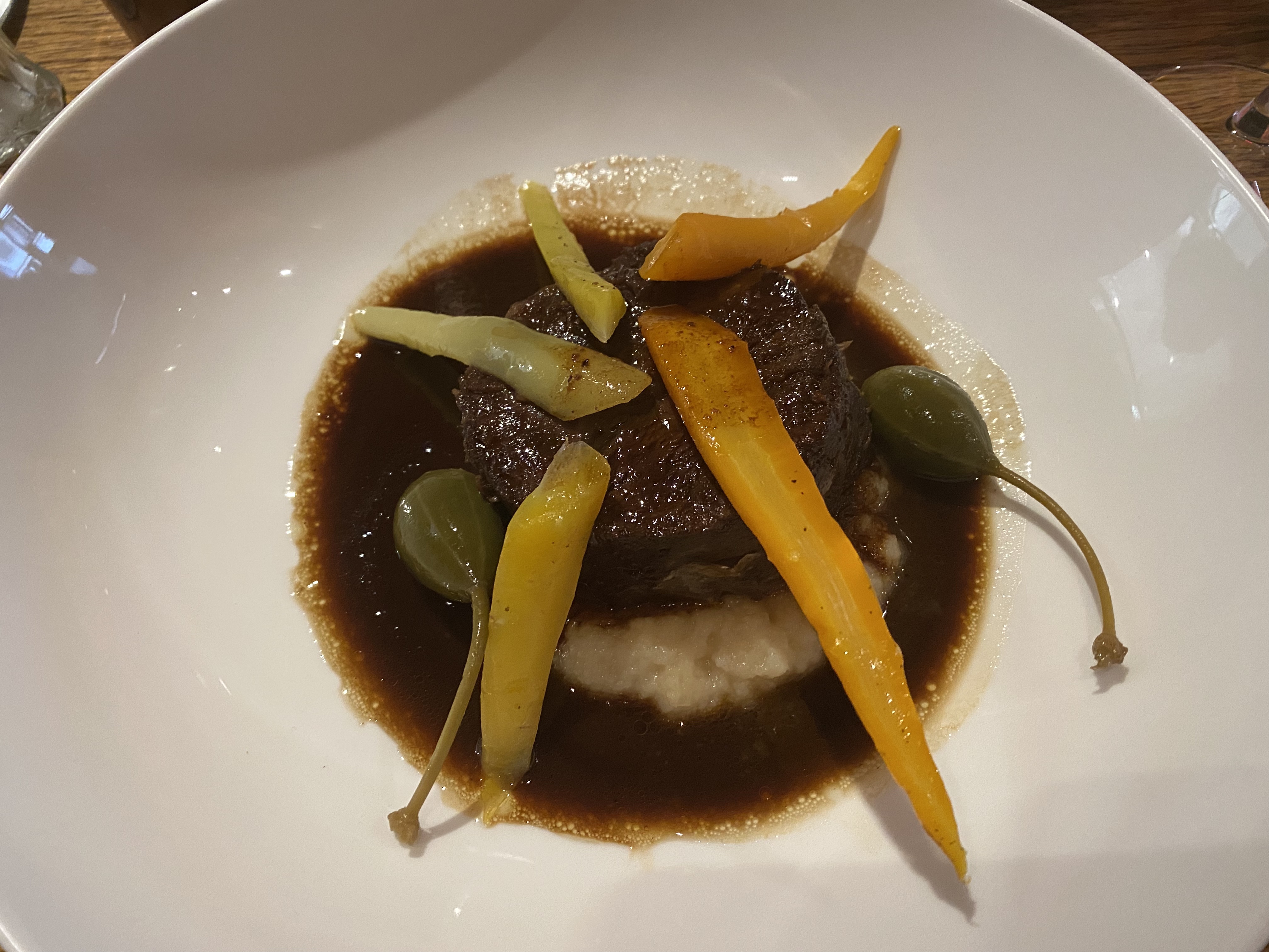 La nourriture était incroyable ! Nous avons énormément apprécié notre visite et tout ce que nous avions était divin, du risotto aux rognons de veau, en passant par les vins suggérés, jusqu'aux desserts (nous en avons eu trois !). Le service était attentionné et attentionné et l'ambiance est chaleureuse et empreinte de simplicité. La nourriture peut briller, comme il se doit. Hautement recommandé.