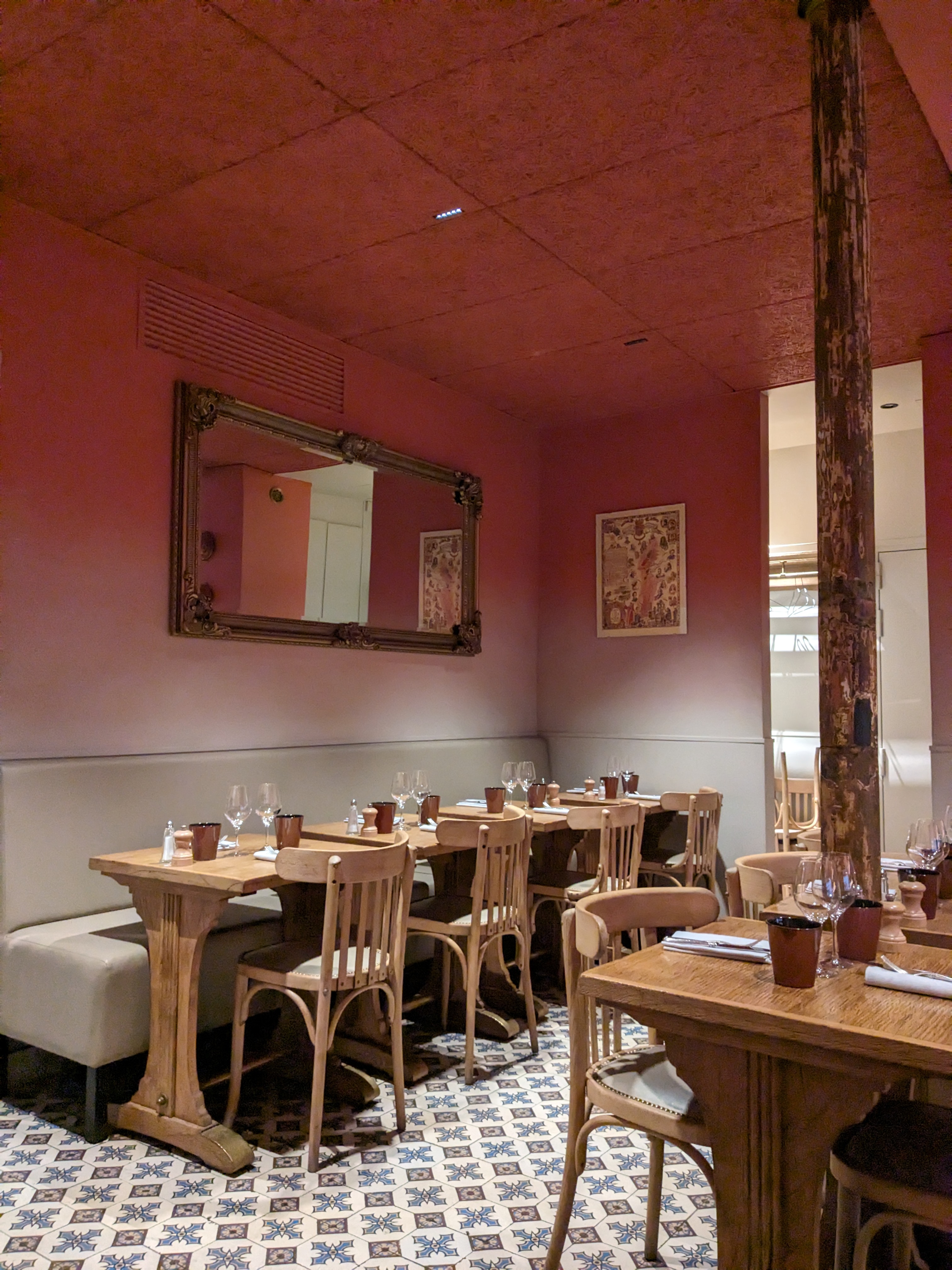 Nous sommes venus ici car nous avons essayé et aimé le restaurant du même propriétaire, Les petits princes. L'option du menu du déjeuner à 29 euros pour 3 plats était limitée à très peu d'options, nous avons donc pris l'option à 41 euros. Ce qui nous a plu : de belles terrines proposées avec du bon pain pour l'accueil, toutes les entrées (coquilles Saint-Jacques, champignons, œufs parfaits, poireaux) étaient délicieuses. Le vin était vraiment bon. Les desserts poires et figues étaient bons Ce que nous n'avons pas fait : les garnitures du plat principal de bœuf étaient un peu médiocres. Le riz au lait n'était pas assez cuit à notre goût. La souris au chocolat pourrait être plus joliment présentée…