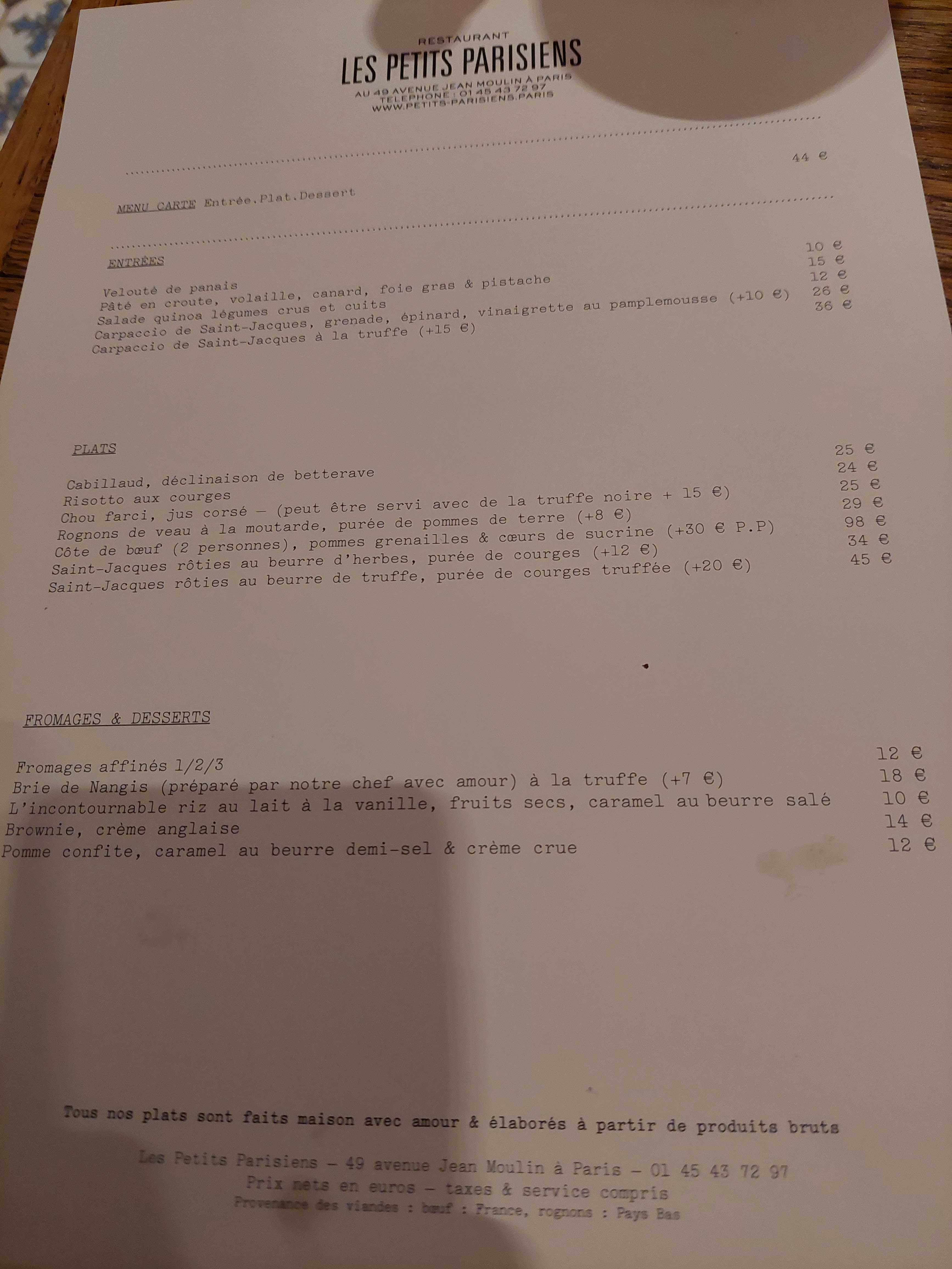 Une pépite. Si vous connaissiez la régalade, vous devez tester la cuisine des petits parisiens. On y retrouve le fameux riz au lait et la terrine de bienvenue. Côté plats c'est équilibré, fin... un régal