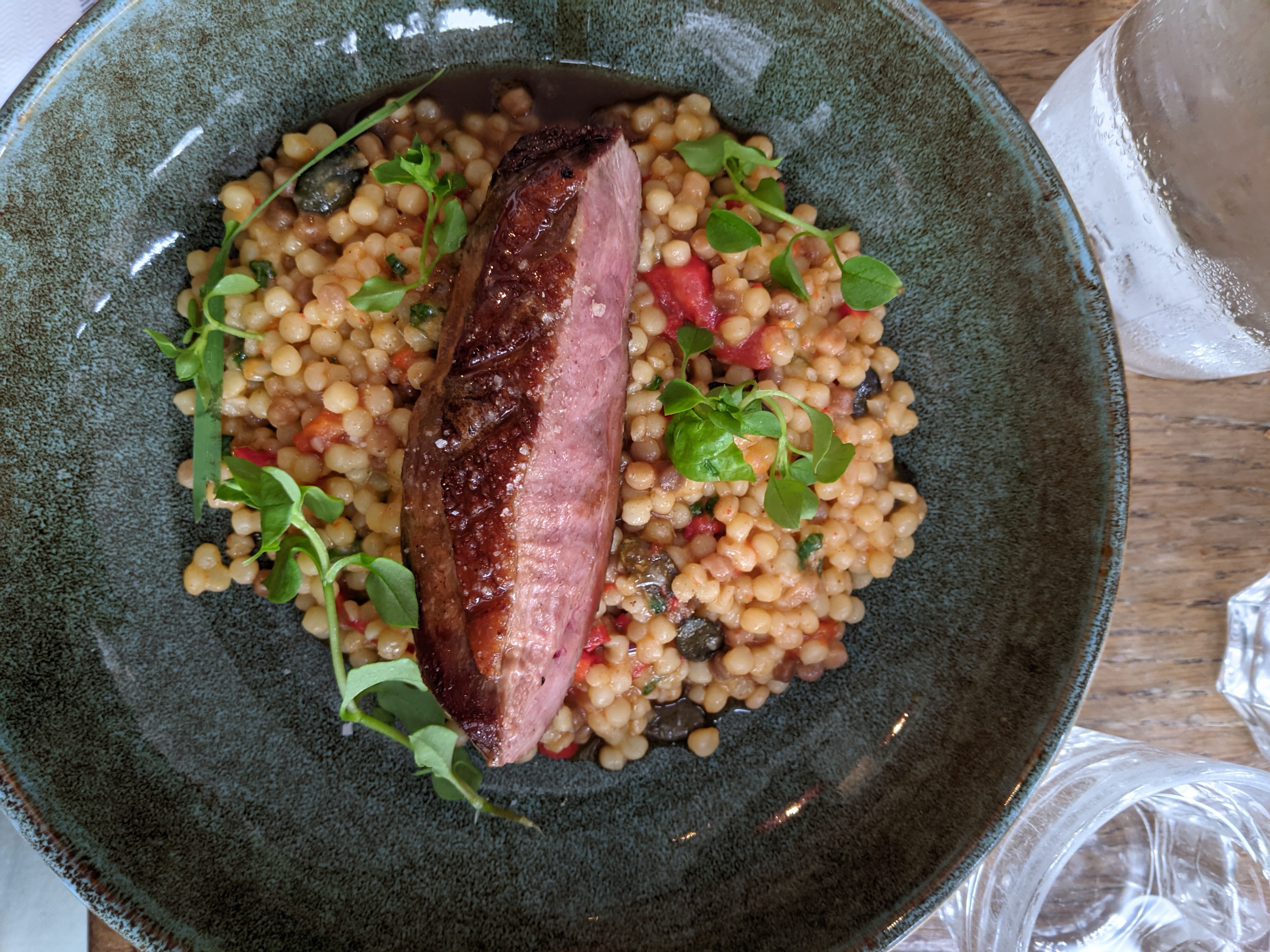 Un problème de four nous a empêché de déguster les plats les plus attrayants. Ceci dit cuisine soignée fine et originale, très bon service. La possibilité de pendre deux demis plats est originale mais prend significativement plus de temps que de faire naf naf avec son voisin. Assez bruyant.