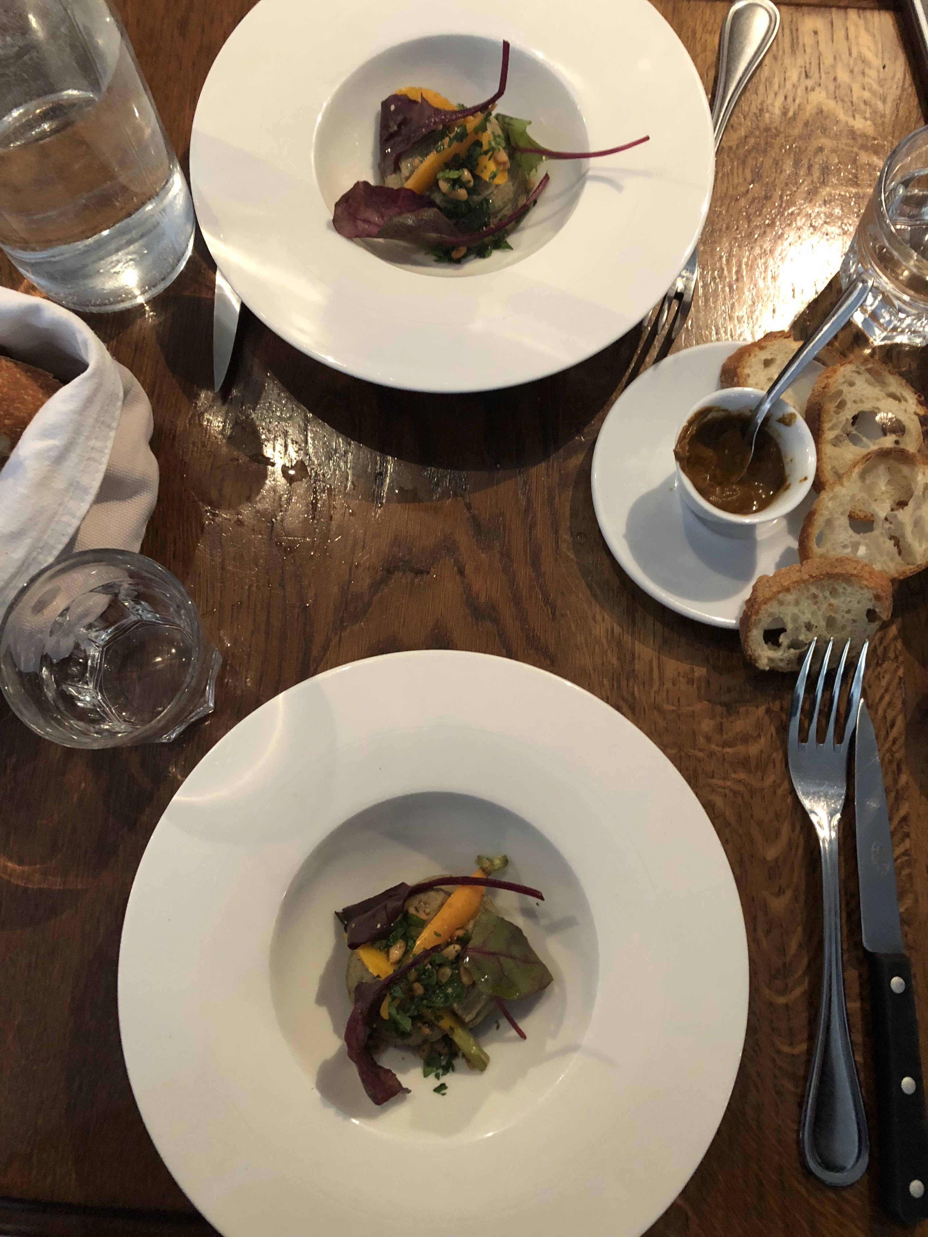 Merveilleux restaurant. Ambiance très agréable et service attentionné. Excellent velouté de carottes, suivi d'un excellent plat de poisson et d'un dessert à la rhubarbe. Nous avons opté pour les options plus petites pour le plat principal, qui étaient parfaitement suffisantes.