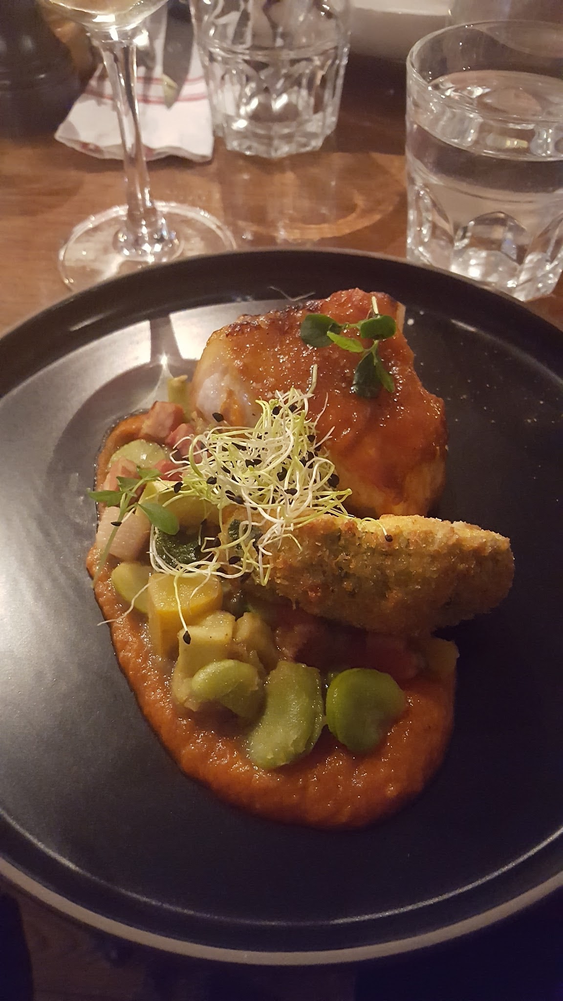 Un bon moment et un accueil chaleureux. La cuisine,inventive, a su ne pas être prétentieuse mais plutôt authentique dans la gestion des saveurs. Un coup de cœur pour le Faugère de chez Leon Barral. Le dessert était la partie un peu plus faible mais l'ensemble fût un plaisir. Chouette adresse.