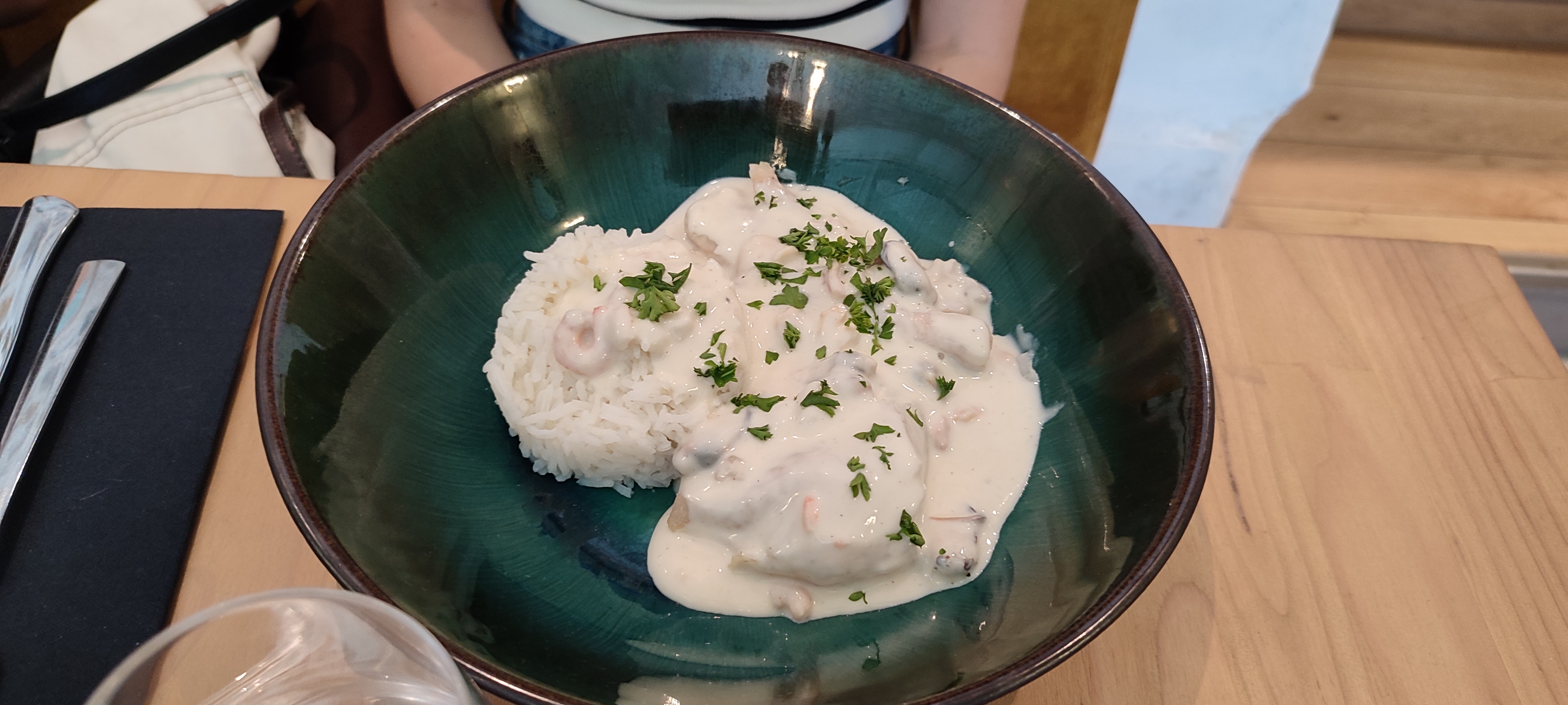 Délicieux ! Le cabillaud était excellent avec u e sauce bien goûteuse. Je recommande Décor très joli