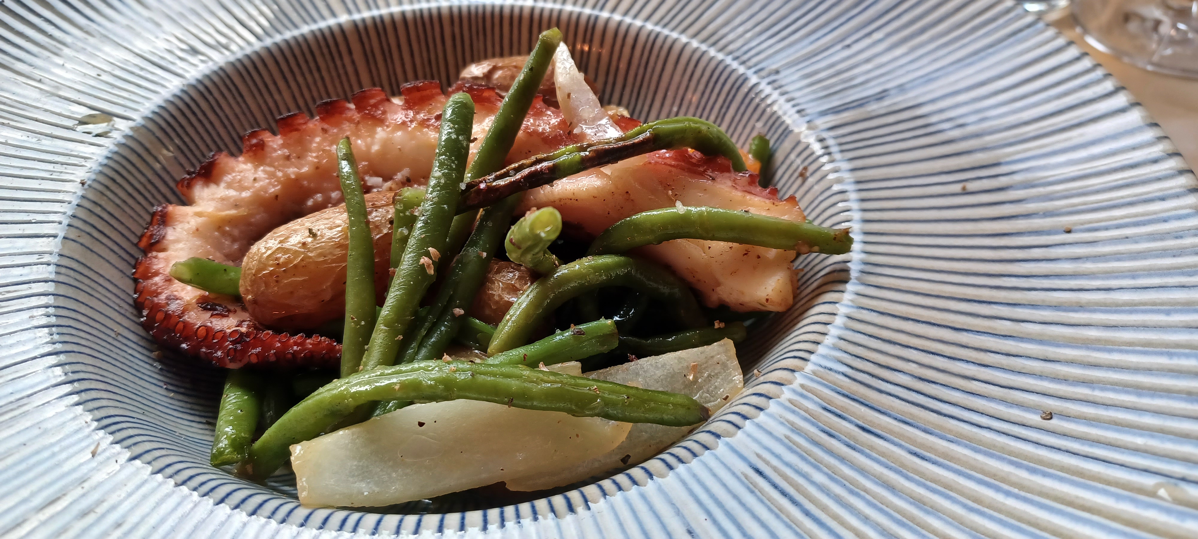 Bonne nourriture ! Super prix ! Nous étions un peu pressés car nous avions rendez-vous et le service était rapide. Nous y retournerons et dégusterons un autre plat fait maison ! Nous avons eu du poulpe, des œufs et du brie fondu.