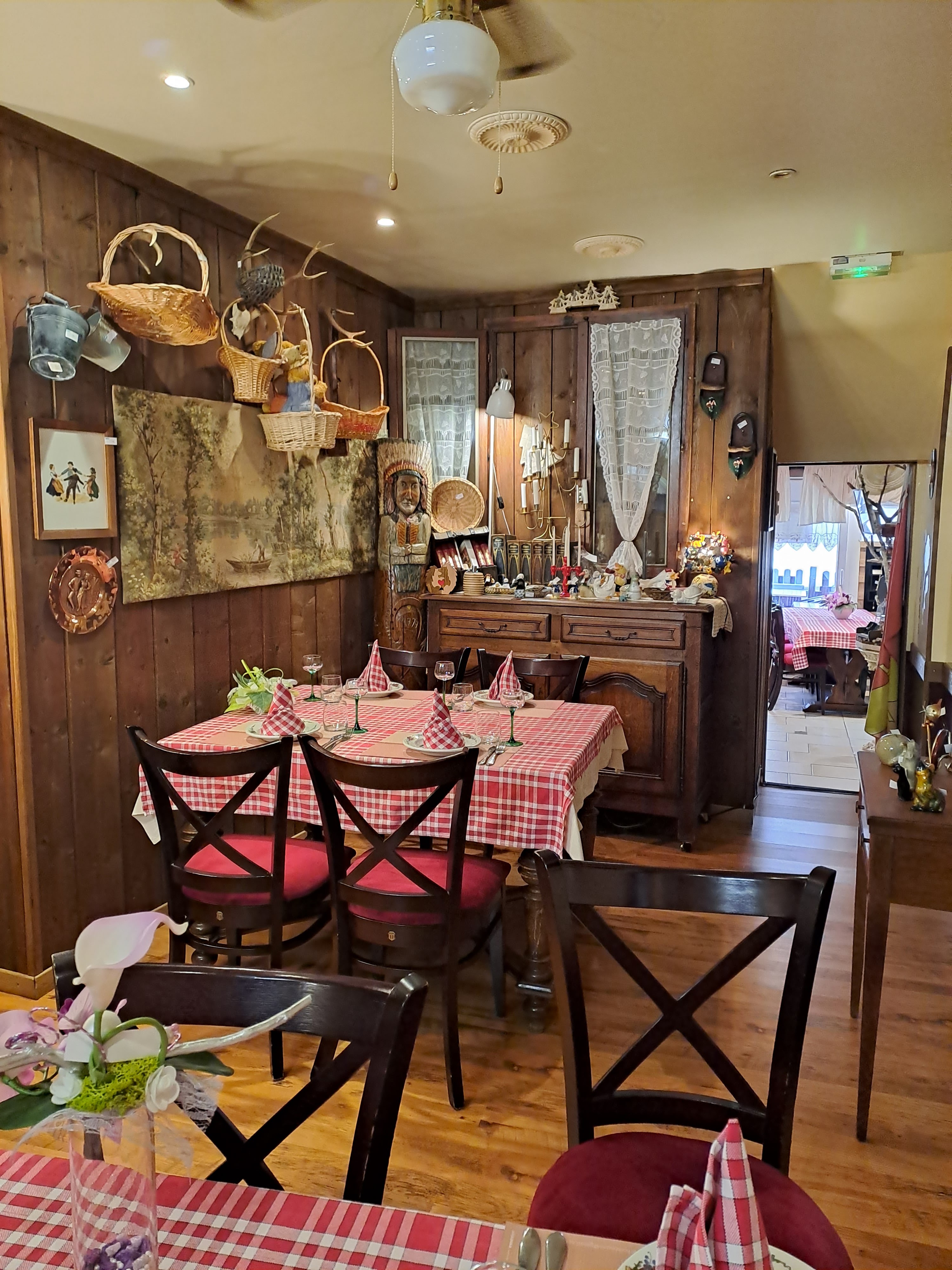 Les plats sont savoureux, servis dans des récipients typiques .( exemple : civet de lapin , jambonneau braisé à la bière) ..Des objets de brocante sont à vendre et participent à la décoration du restaurant.Ce restaurant est à recommander absolument pour la qualité de ces plats et du fait de son implantation proche de lieux culturels et de mémoire..