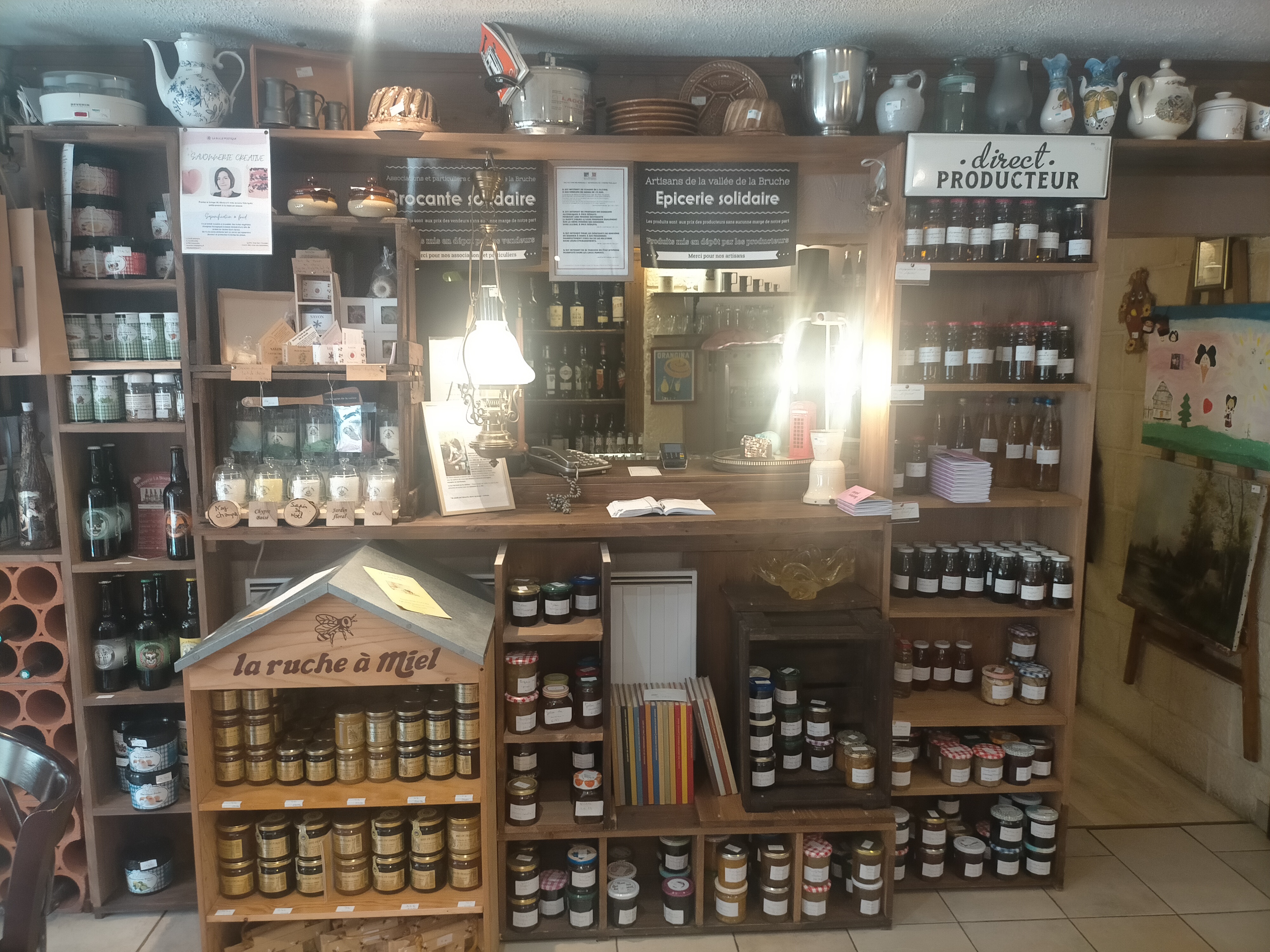 Nous étions un groupe de 12 randonneurs L'endroit donne tres envie accueil charmant patronne tres bonne vendeuse et au petit soin pour ces clients et un patron qui donne tres envie de revenir prendre un repas car la préparation des chocolats viennois qu'il nous a fait etait une tuerie C'est un bar bistrot restaurant participatif avec la vente des petits producteurs de la région ( bijoux , objets en bois ,vin, bières,sirops confitures, champignons etc...... Ensuite c'est également une brocante tout ce qui si trouve et a vendre sauf la patronne et le patron et bien sur pas le mobilier mais par contre plein de petites et merveilleuse chose plein d'objets de vaisselle d'ustensiles etc...,... Une tres belle fin d'après midi chez mamama Il faut y aller ça vaut le détour