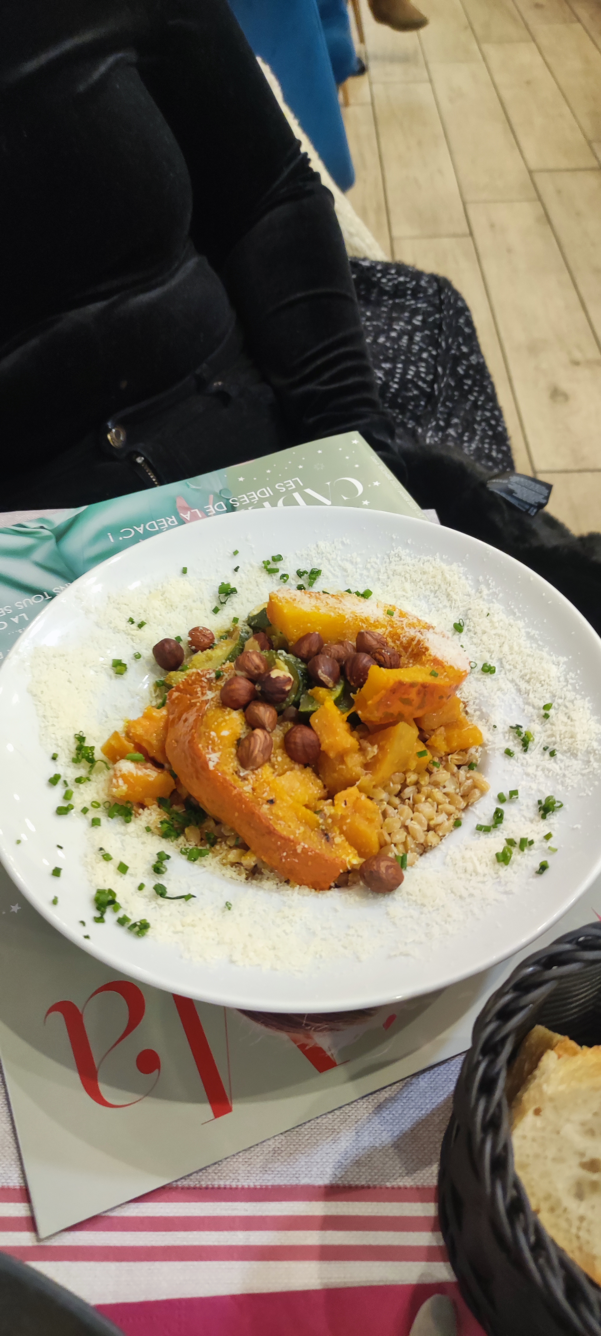 Linguine aux truffes et gratin de butternut très savoureux. La tarte au citron était également excellente.
