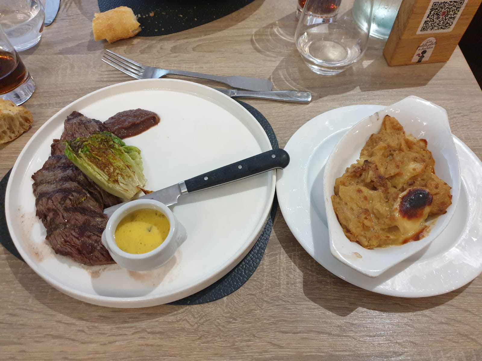 Invité par mon entreprise pour le repas de fin d'année, je dois dire que c'est réussi ! Après avoir travaillé au Petits Plats en tant qu'apprentie, la salle du restaurant a bien changée mais la cuisine est restée la même. Un cadre idyllique pour dîner et en plus de ça sur la grande table ronde ! Je n'ai malheureusement pas pensé à prendre en photo mon dessert ( bien trop appétissant pour y penser ! ) mais pour ce qui est de la salade de légumes de saison crus et cuits je n'ai rien à redire, sauf peut-être la quantité (même si avec la formule entière cela aurait été copieux d'avoir une plus grosse assiette, jai même découvert un nouveau légume ! ) et pour la pièce du boucher et son gratin de pomme de terre chèvre c'est une tuerie ! Vous pouvez y aller les yeux fermés 🫣