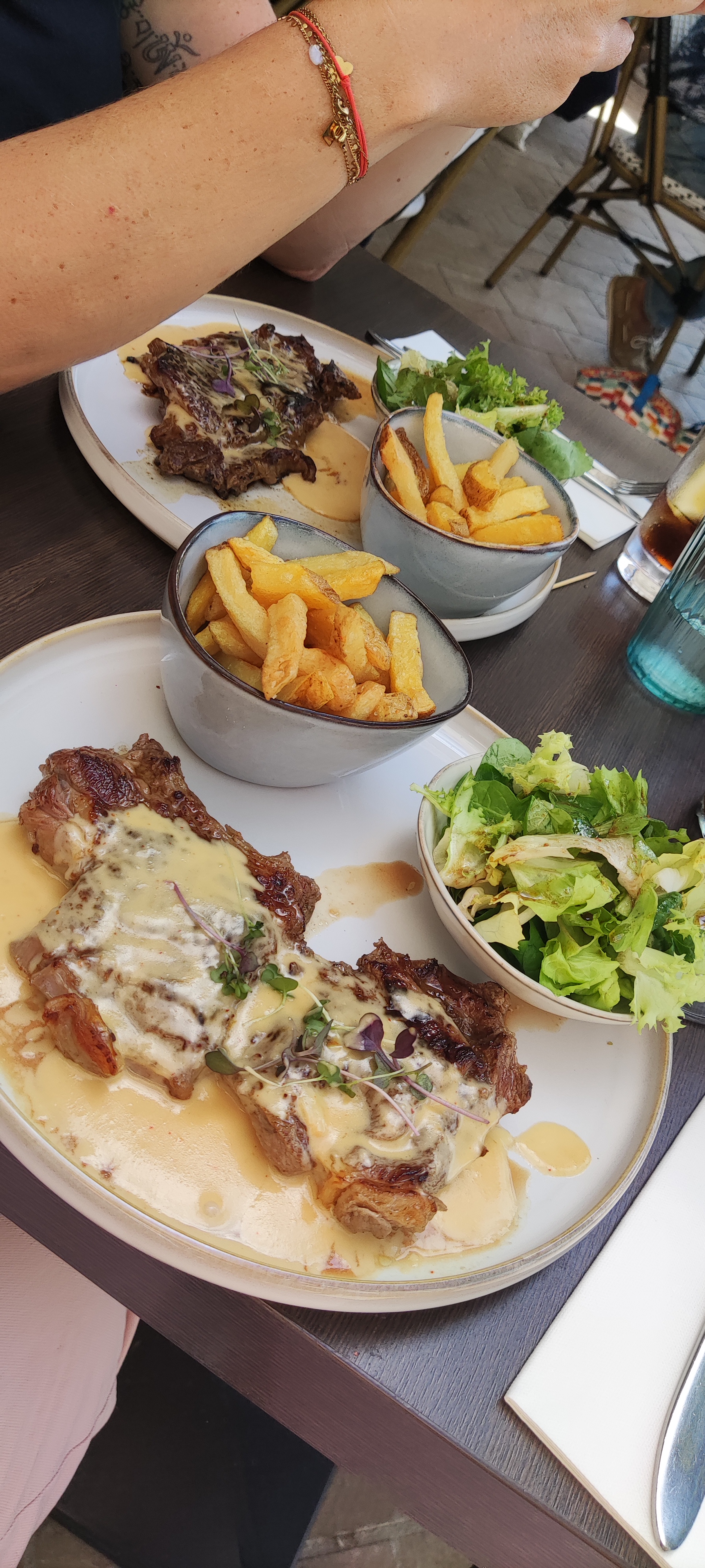 Miammmm la côte à l'os ,les frites maison (et on est belges)la salade,l'os à moelle et l'ail confit.C'est simple mais tellement bien préparé ,cuit à la perfection.Bravo,on s'est REGALE (j'y pense encore).Le service.....le sourire de la serveuse......TOPTOPTOP On reviendra