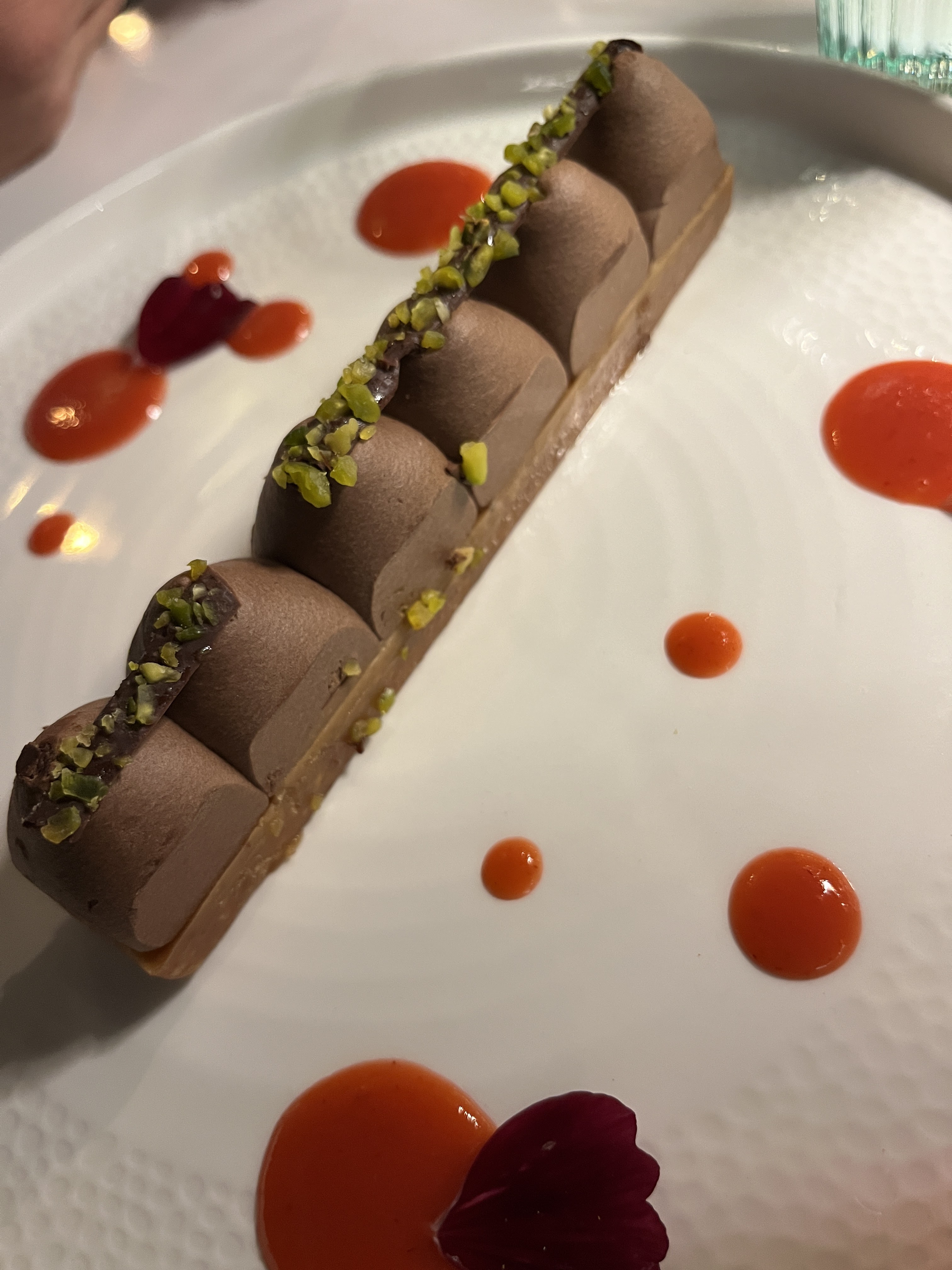 Porgy rouge délicieusement grillé et parfaitement cuit rehaussé d'huile d'olive aux agrumes de yuzu et graines de fenouil servi avec des légumes légers et une mousse de diverses curbitacées. Désert très raffiné avec chaque saveur équilibrée : base de noix de cajou torréfiées garnie de ganache au gianduia et agrémentée d'un trait de chocolat noir parsemé de pistaches grossièrement moulues. Le personnel était très sympathique et serviable malgré une salle comble. Certainement une adresse incontournable pour les délices culinaires. Le restaurant a été recommandé par Ambre de l'Hôtel Rose Thé.