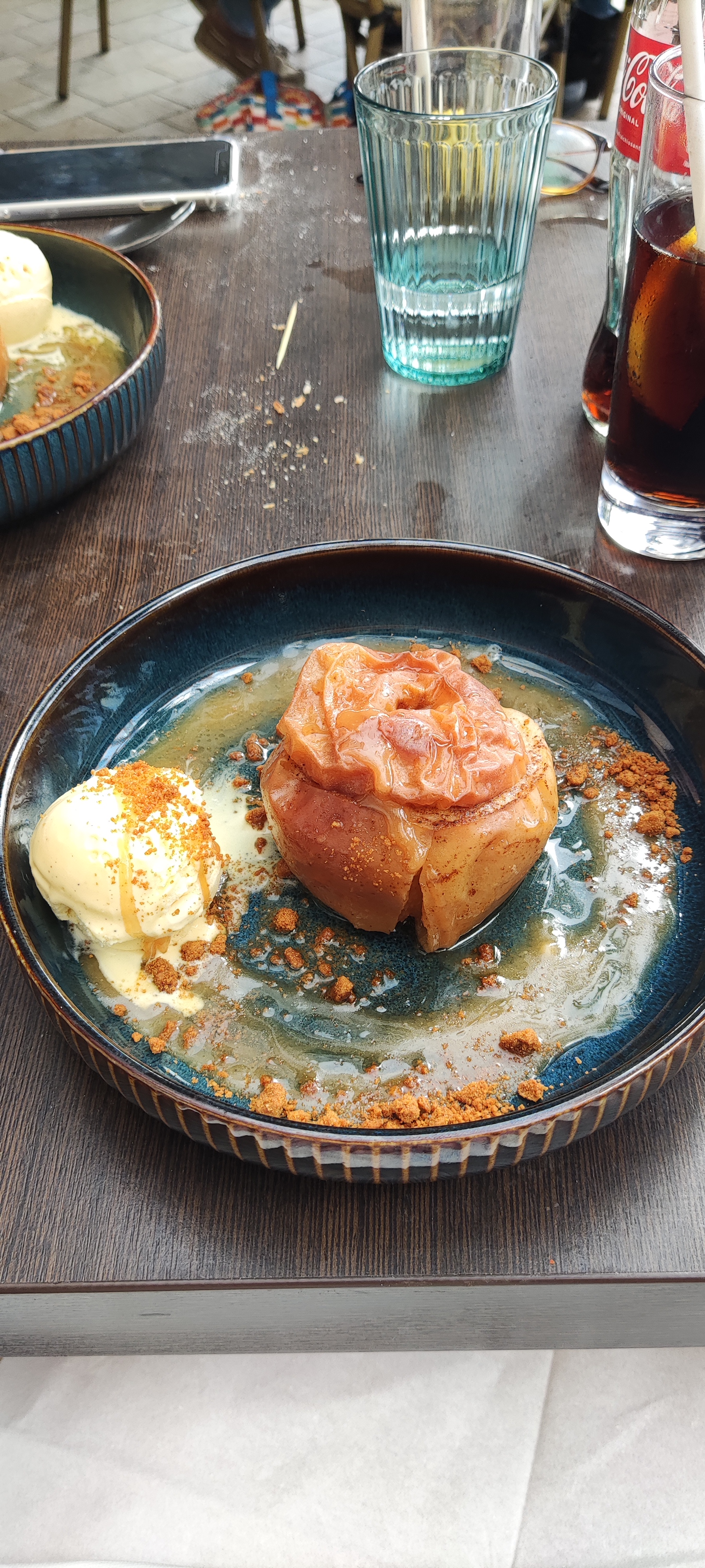Pour une première expérience j'ai kiffé, et j'y retournerai ça c'est sûr. Un bon rapport qualité-prix mais c'est surtout bon. J'ai pris le plat du jour entrecôte avec sa crème à l'ail accompagné de ces frites, et en dessert pomme au four caramel beurre salé avec sa boule de glace à la vanille. Le personnel est au top, très bien accueillit mais surtout très attentif à nos besoins lors du repas. Donc conclusion je vous le recommande 😉🤗