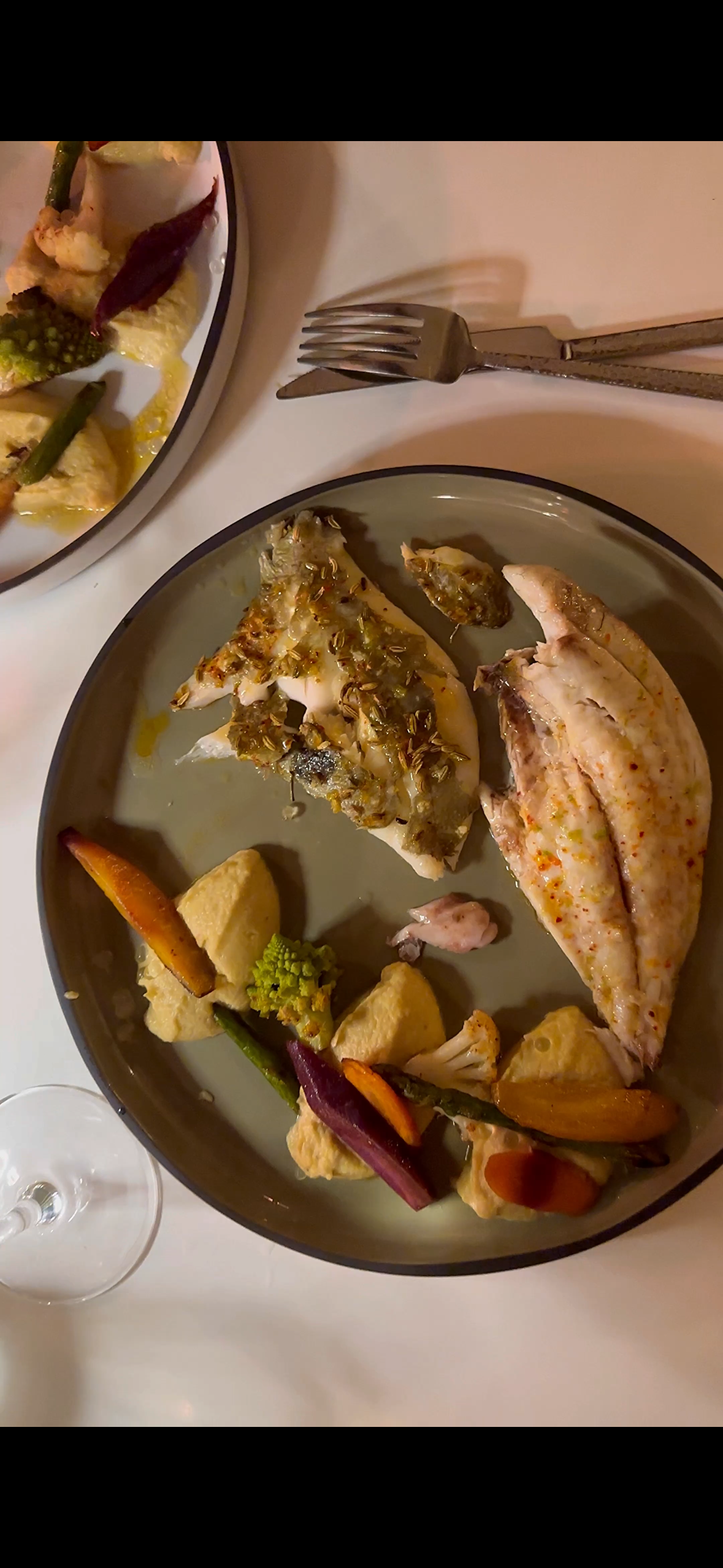 Une cuisine magnifique à hauteur des attentes! Le carpaccio de poulpe etait divin, les bulles de citron explosaient en bouche! Et que dire du poisson du jour en portefeuille, pour moi un loup, un vrai, des saveurs incomparable! Une belle soirée, un tres bon moment!