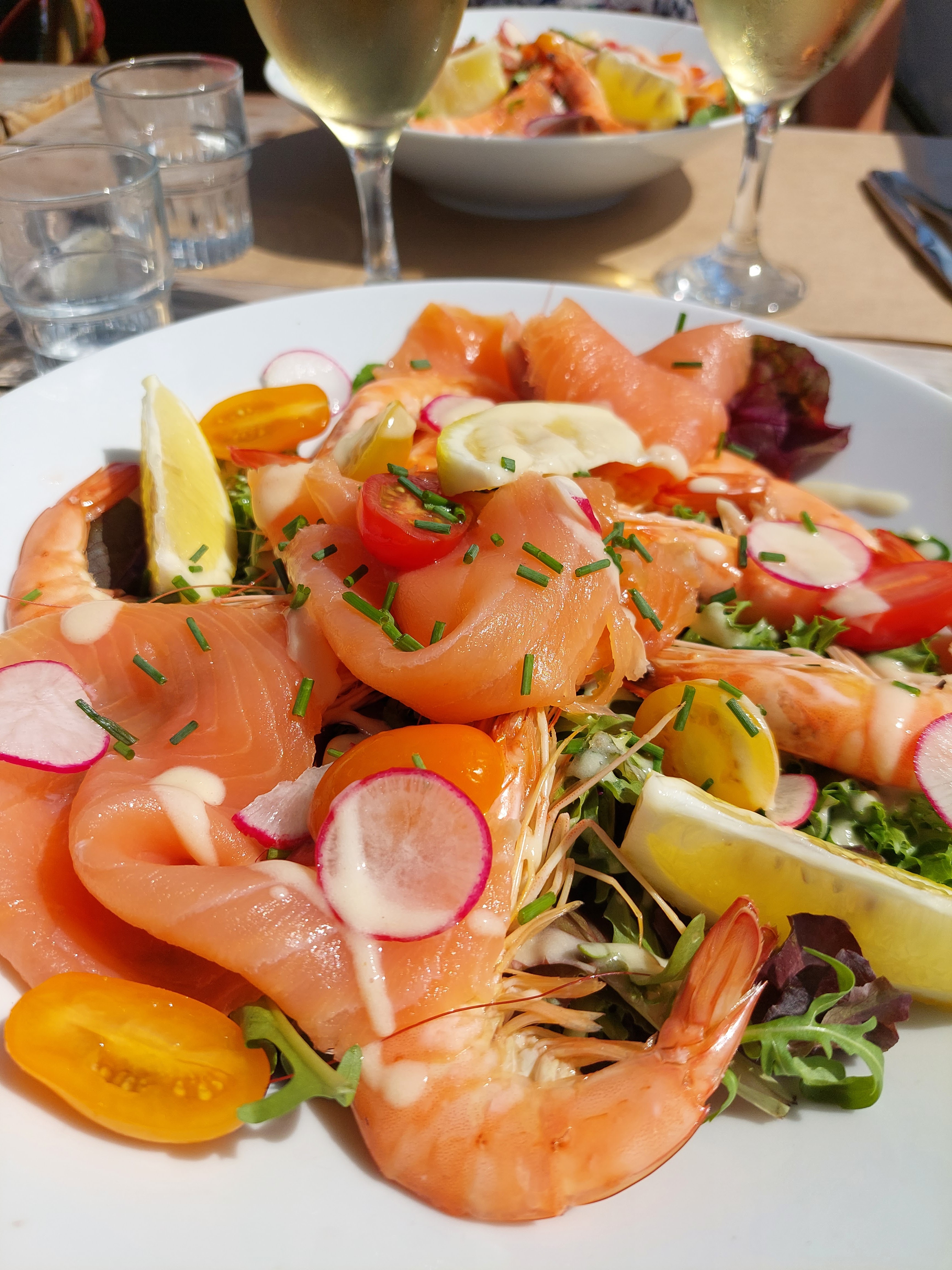 Accueil sympathique et du personel a l'écoute. Nous avons réussi à y manger sans avoir fait de réservation. Une belle terrasse.avec vue sur la mer. Cuisine de brasserie de bord de mer. Je vous recommande le fare aux pruneaux avec son caramel au beurre salé sa boule de glace vanille et sa chantilly...à tomber!