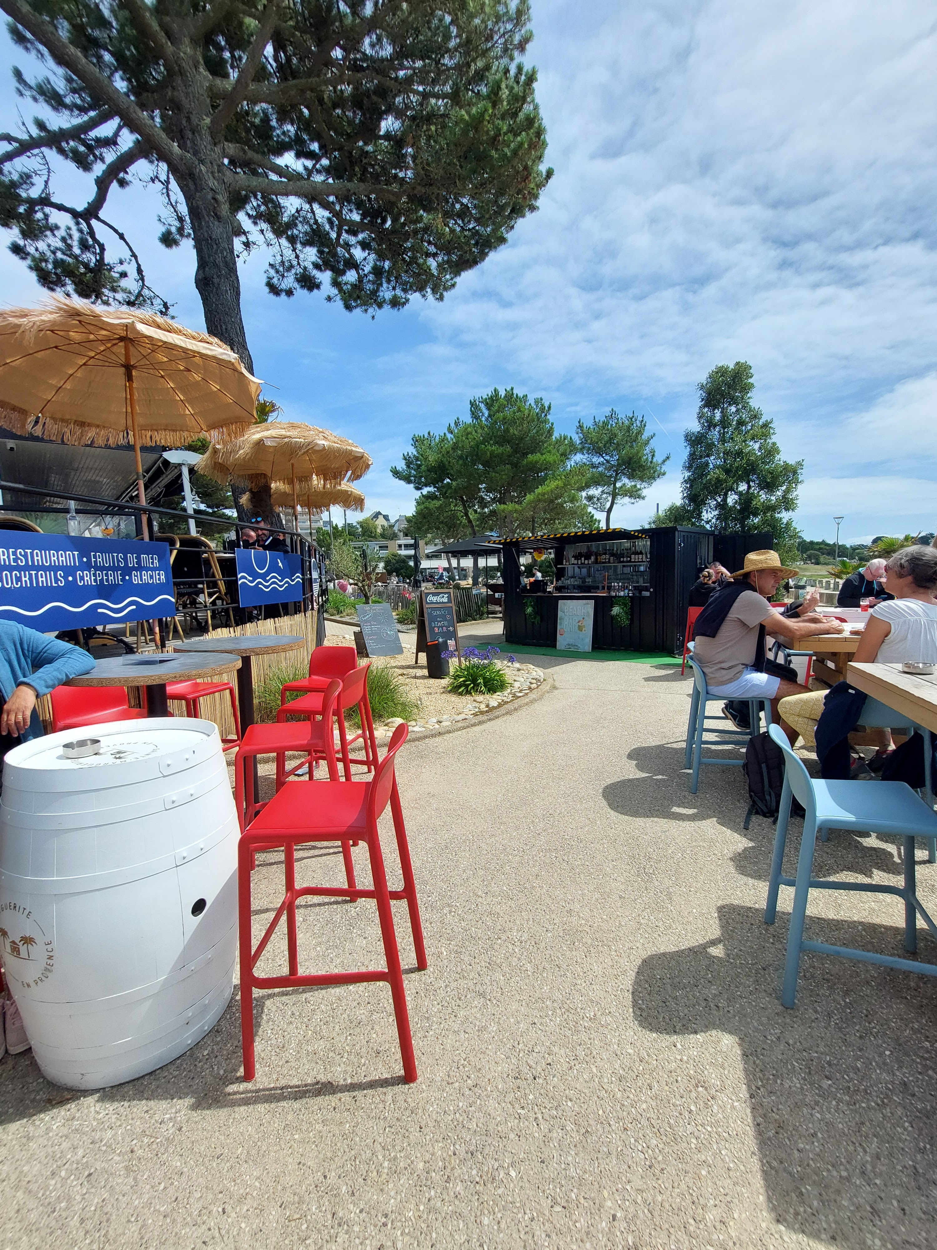Le cadre est certe sympa et le style beachclub. Mais c'est tout... Les étudiants qui y travaillent pour le compte d'un parton possédant toute la restauration de Guidel plage sont à l'image de son manque de conviction de faire les choses bien ; attrape touristes, il n'y a rien d'autre... C'est pas propre et la cuisine même simple (voir simplifiée ) est expéditive. Ne vous étonnez pas de recevoir vos plats froids et en décalage... Bref les restaurants et bars dépannent mais ne vendent pas du rêve ici