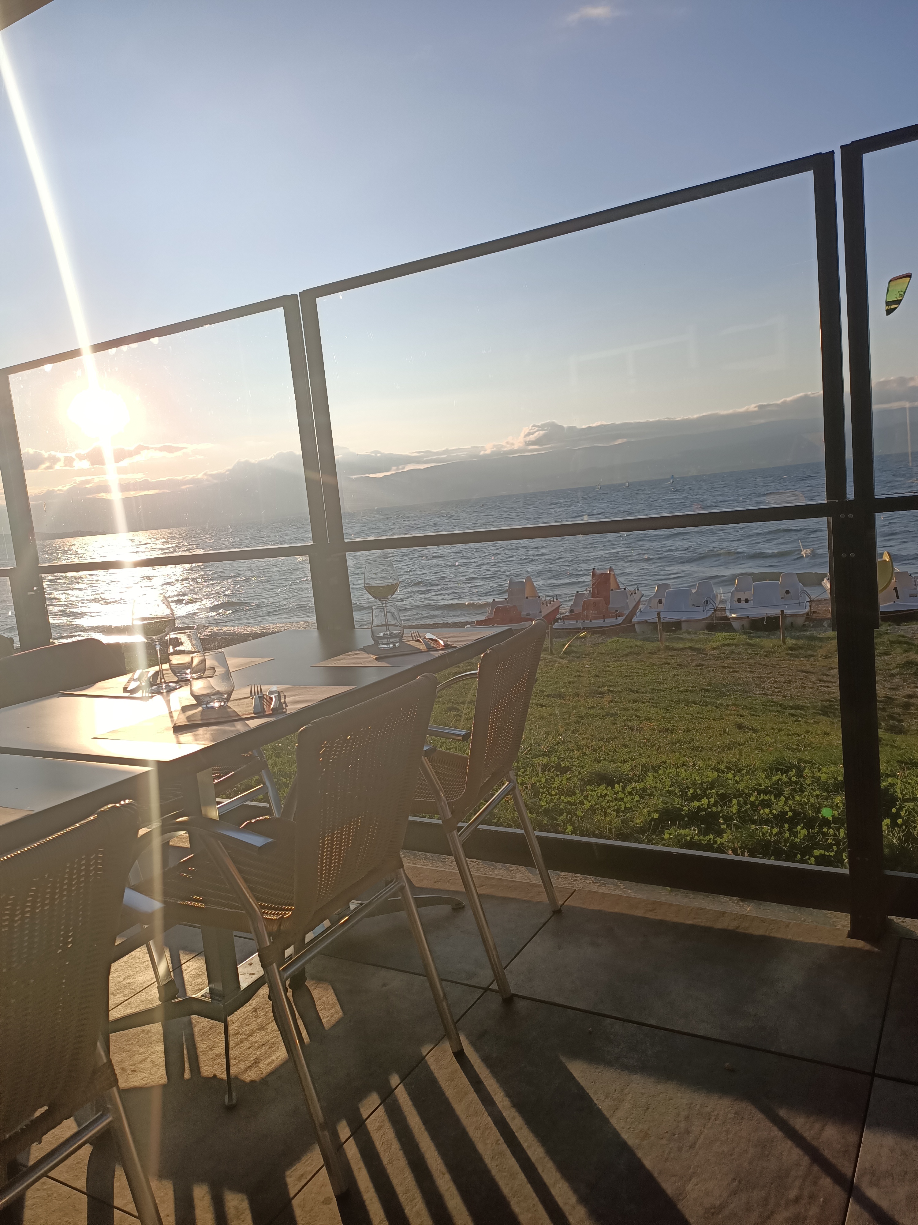 Une vue imprenable sur le lac, un couché de soleil magnifique. Pour ce qui est du repas un peu déçu, le tartare était bon mais les frites pas maison ! Et par contre plus jamais je ne prendrais de dessert… 10 euro le baba au rhum pas maison dommage… Le service était top autrement Le prix des vins 44 euro la bouteille de minuty prestige