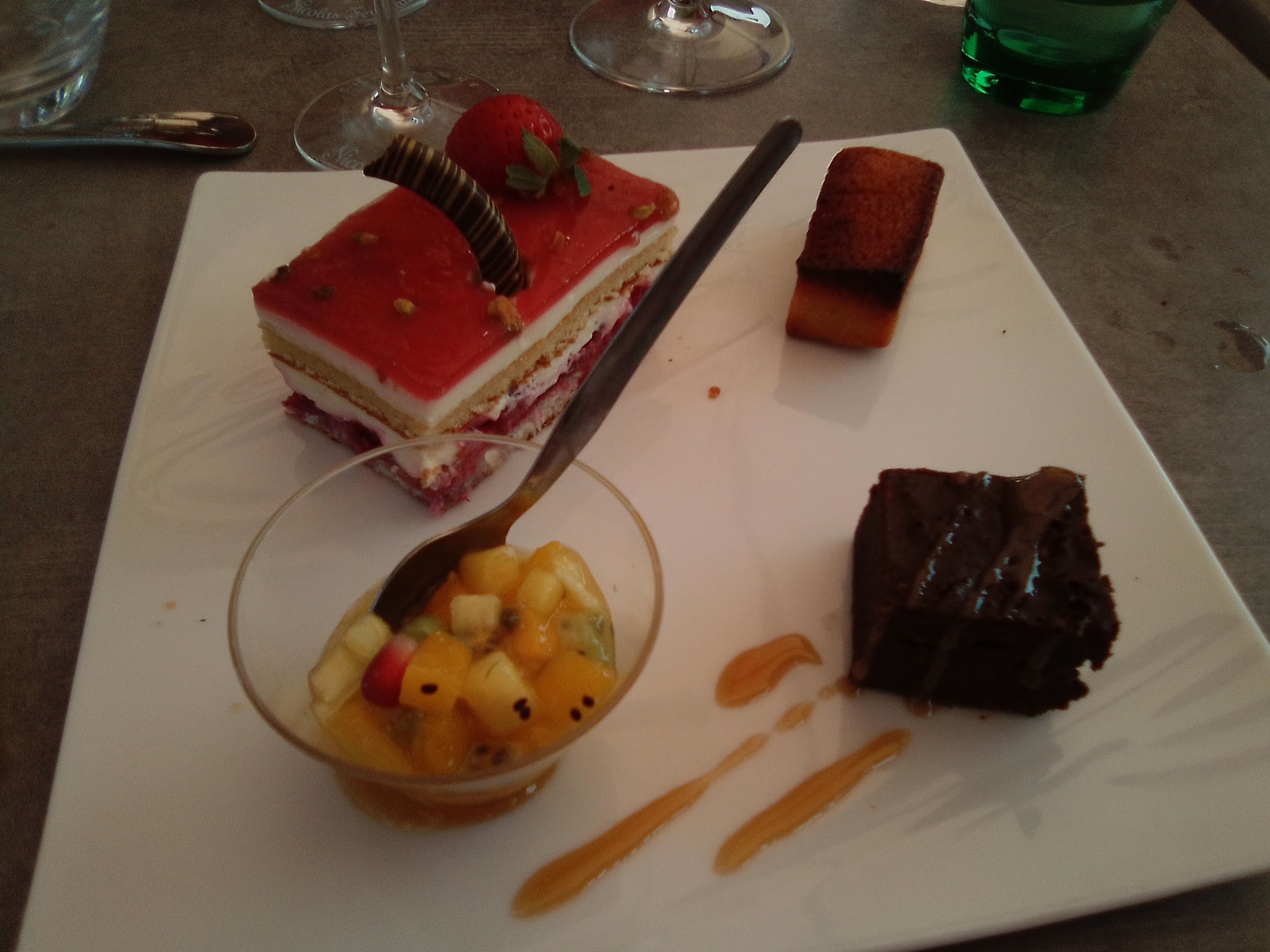 Entrée : une simple tranche fine avec une faible quantité de canard Plat : plat très fade, gambas beaucoup trop cuites et donc caoutchouteuses Dessert : très fade également Formule entrée/plat/dessert à 25 euros mais malheureusement ni quantité ni qualité n'étaient au rendez-vous Très décevant ! Je ne recommande pas ce restaurant.