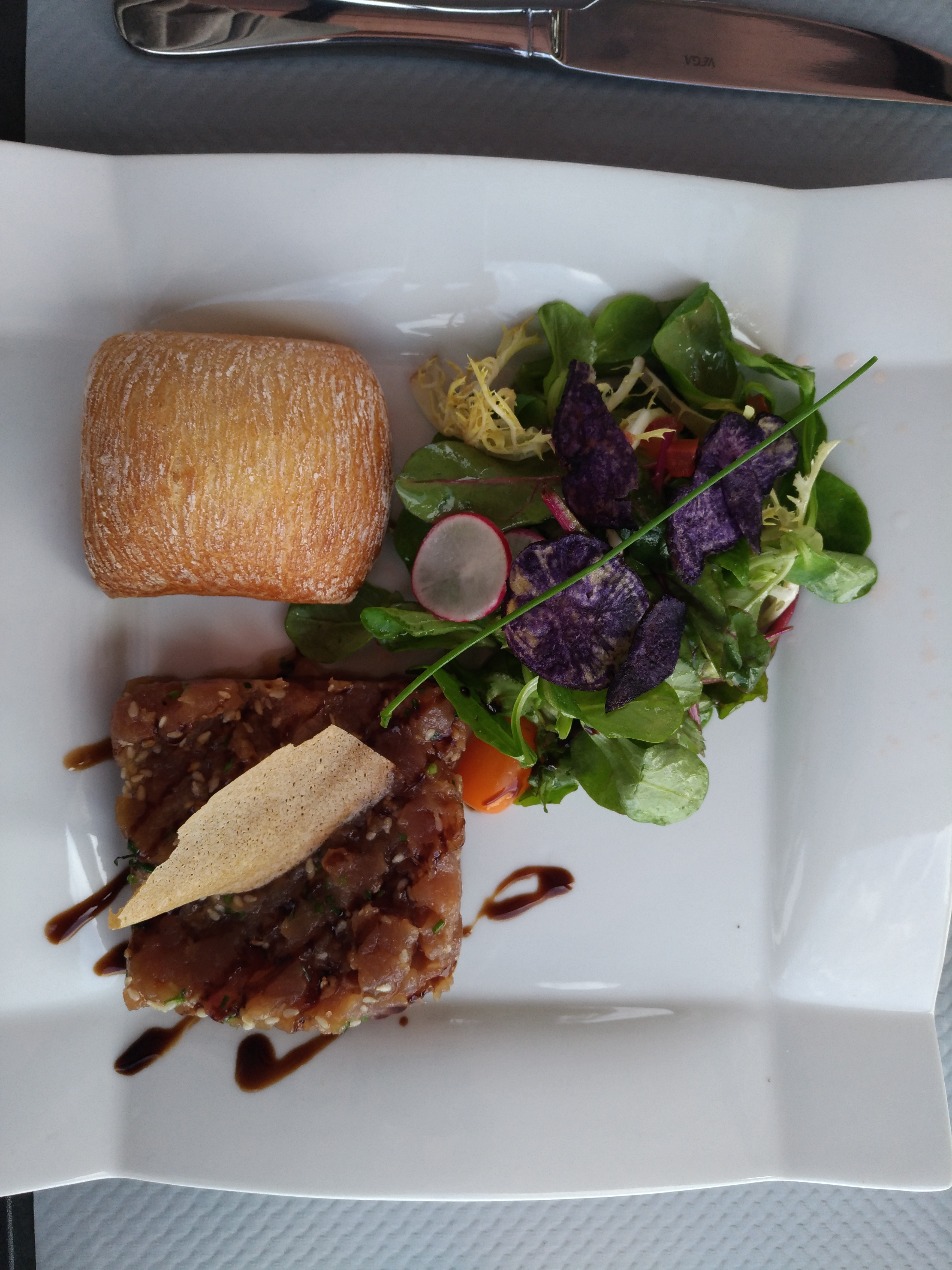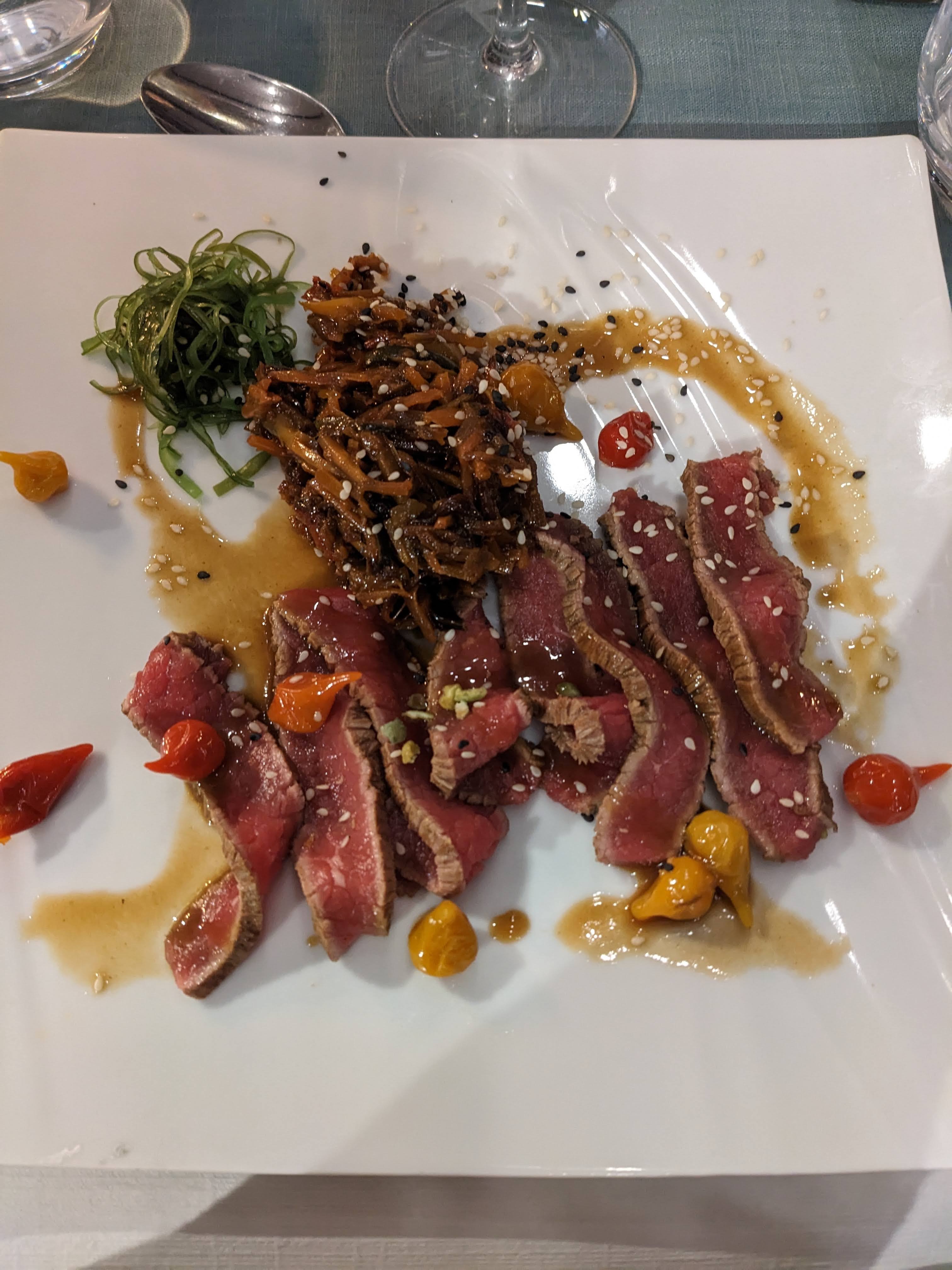Service rapide et sympathique. Nous avons commandé 2 plats de poisson (poisson du jour et tataki de thon) et ils sont excellents. Un subtil mélange de sucré salé avec des ingrédients frais et variés qui justifient le prix pas si exorbitant que ça. Beau resto bien placé en bord de mer.