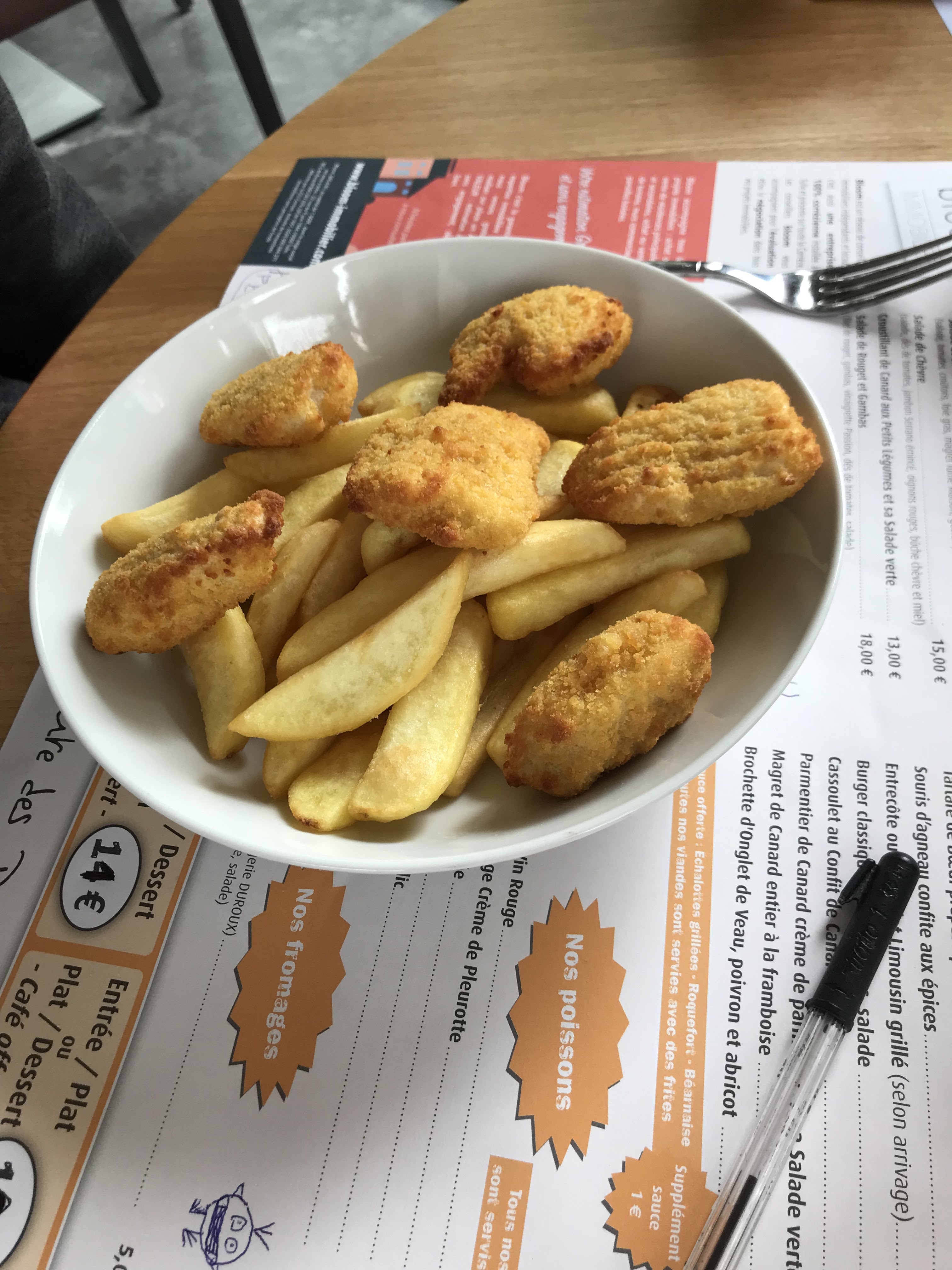 Eh bien... je ne m'attendais pas à de la cuisine gastronomique, c'est sûr. Mais j'ai été très déçu de mon plat. Le camembert était amer et les frites surgelées n'étaient pas super. Le pain est si bon dans la région, mais nous avons eu droit à du pain industriel... dommage