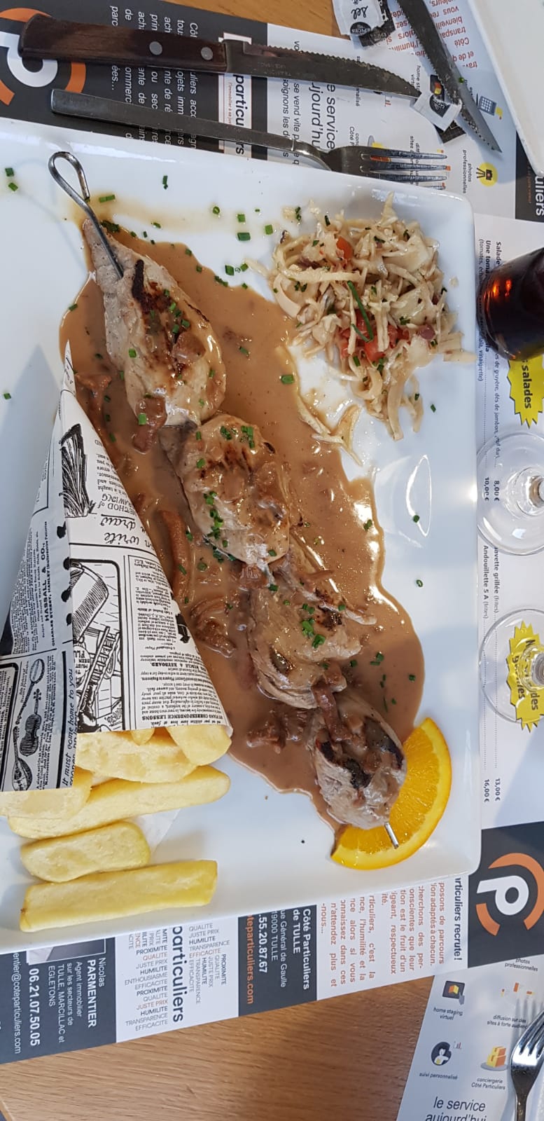 L'accueil très froid et surtout refoulé pour la deuxième fois Malgré des tables dressées sans clients, et d'autres même pas dressées, Plus de place COMPLET ..... Nous sommes un couple de personnes qui rentrent dans l'âge .... De nature pas du tout chiant .... Un vendredi, pour le déjeuner, à croire que les frigos sont vides, même à l'approche du week-end, cela me semble bizarre Une formation pour gérer un petit surplus de clients demandeurs d'un repas tranquille, me semble vraiment nécessaire Malheureusement, je ne peux pas recommander cet établissement Ou alors pensez à réserver d'avance DOMMAGE Petit snack très accueillant pour notre déjeuner an centre de EGLETONS Tres bien .....malgré beaucoup de monde