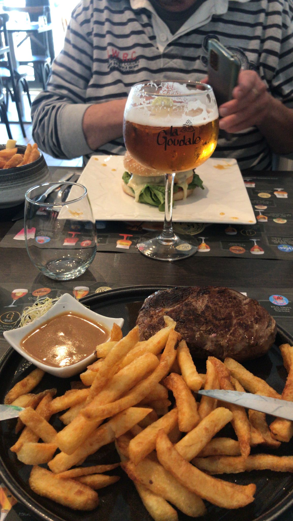 Personnel très sympathique et souriant. Pour le reste, les plats son très basique et servit sans crudités même les entrées. Pour les plats, possibilité d'avoir une assiette de salade verte (juste salade, rien d'autres) mais en supplément. Les frites maison sont délicieuses et c'est un belge qui parle. Dernière bouteille de rosé de Provence et tiède donc on a du limiter les verres de la table et demanderdes glaçons. Tomber à court de Jack Daniels donc plus de possibilité d'en commander.