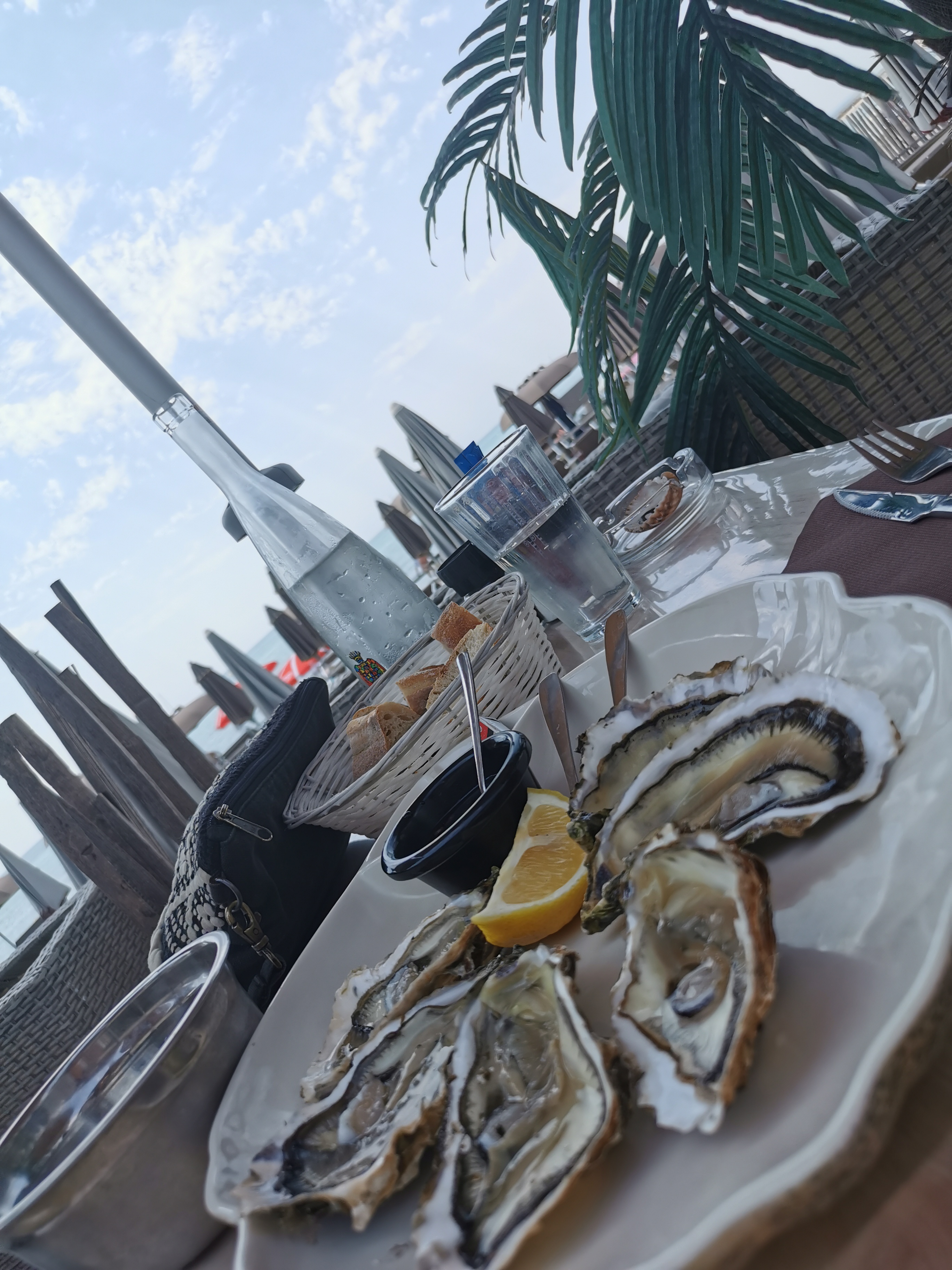 Côté plage: équipe agréable mais manque un peu de dynamisme et surtout de présence à partir de 14h nous, mes voisins et voisines de transat et moi-même, avions du mal à apercevoir quelqu'un pour commander. Les transats très confortables. Boissons et snacking possible. Petit bémol : dommage que la plage ne soit pas non fumeur. Côté resto : du choix et des produits frais, dommage que les frites ne soient pas '' maison ''. Très bon malgré tout et la vue mer ne gâche rien. La terrasse est ombragée et décorée avec goût, idéal pour un petit déjeuner, boire un verre ou prendre un repas '' les pieds dans l'O''. En résumé une belle paillote mais une équipe pas à la hauteur des tarifs pratiqués.