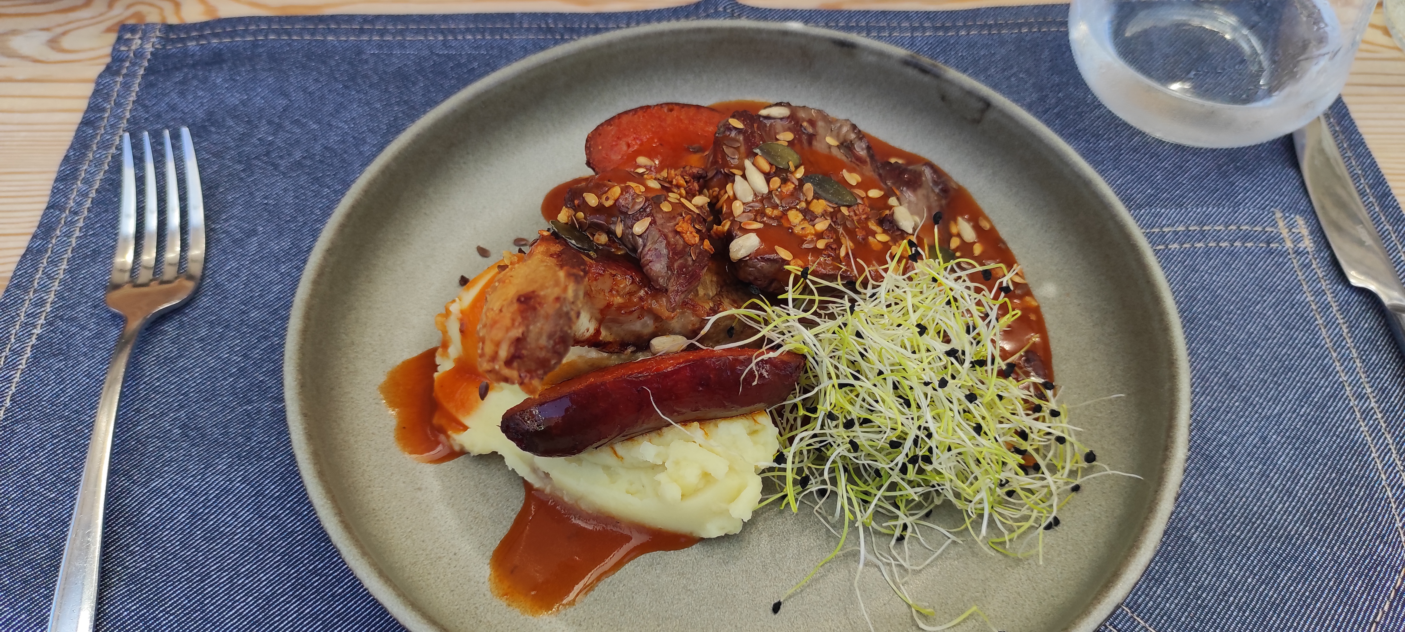 Nous avons passé un très bon moment attablés à les Pieds dans le Plat. Un menu du jour copieux, frais et un rapport qualité prix imbattable. Nous avons été accueillis avec nos chiens (merci !) qui ont eu droit à une gamelle d'eau à leur arrivée. Je recommande cette adresse avec entrain.