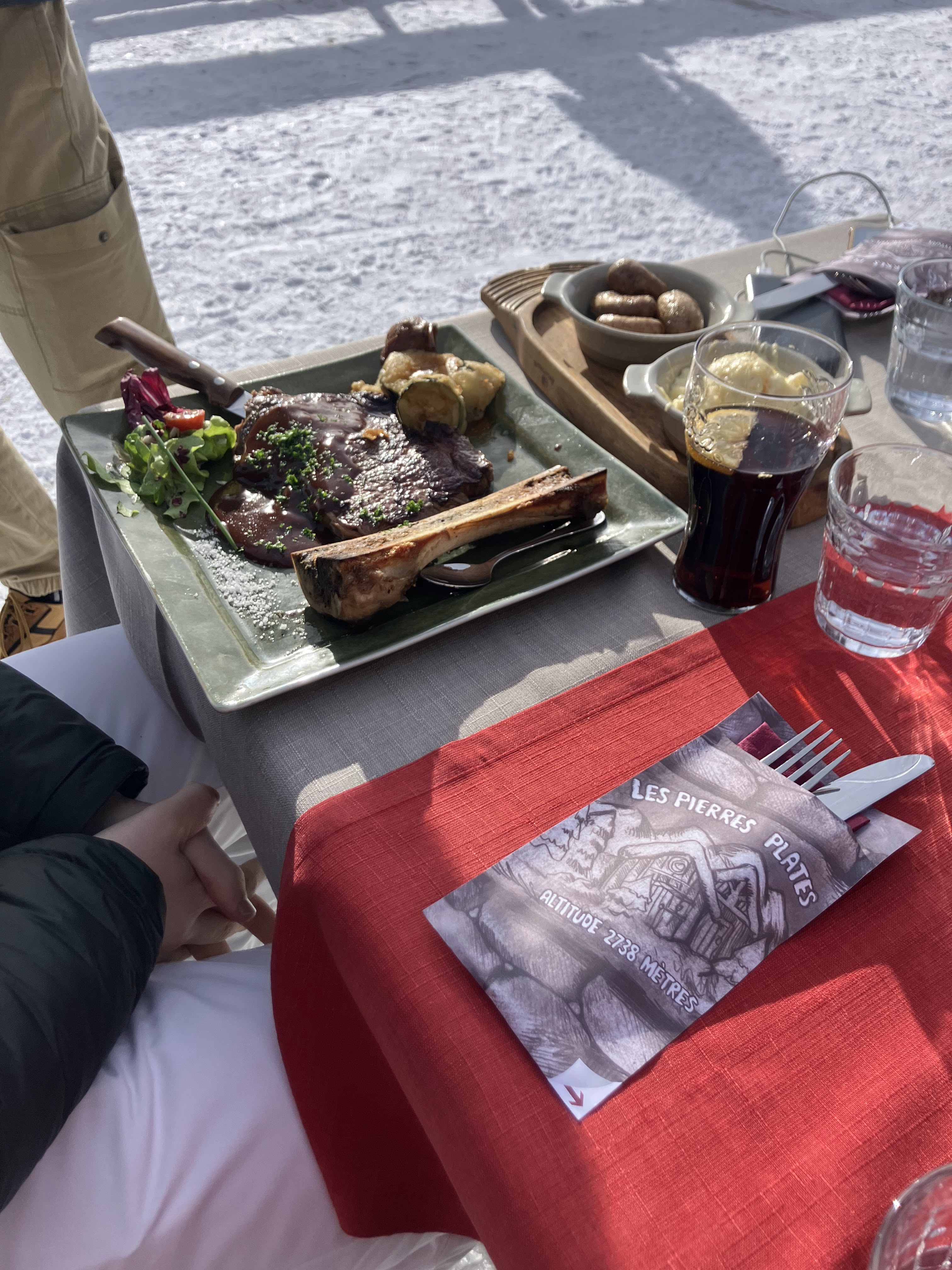 Difficile de juger les pierres plates sur des critères objectifs, car le restaurant est hors norme : dans son altitude, et dans l'exubérance des prix pratiqués ! Clairement, venez ici pour la vue et pour la sympathie du personnel, mais pas pour vous régaler d'un burger fade à 32€ et d'une pinte de Mont Blanc à 10,50€.
