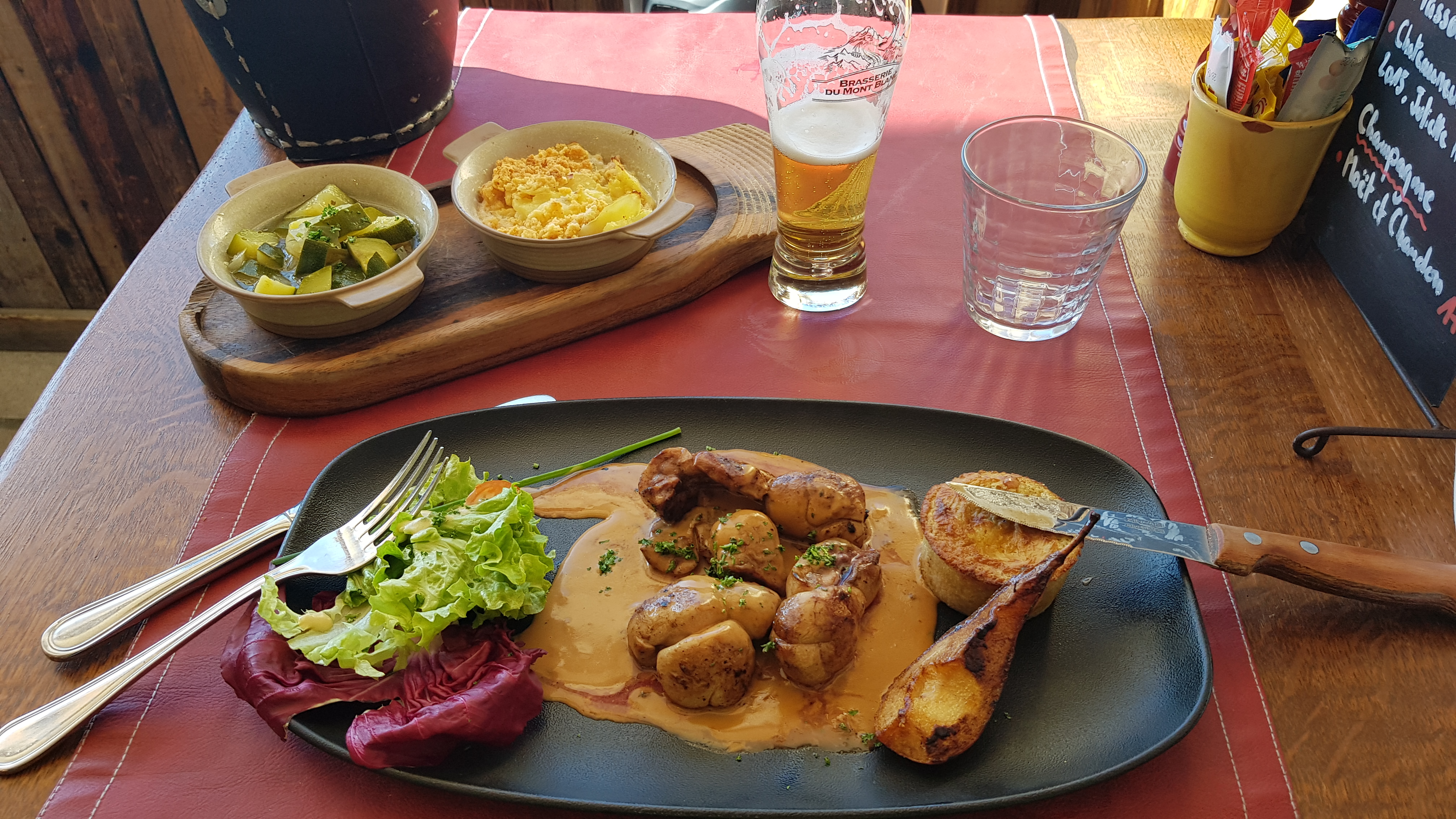 Tout était parfait ! Une vue magnifique, personnel sympathique et un bon repas. Bière, salade copieuse et très bonne tarte aux myrtilles faite maison pour 35€.