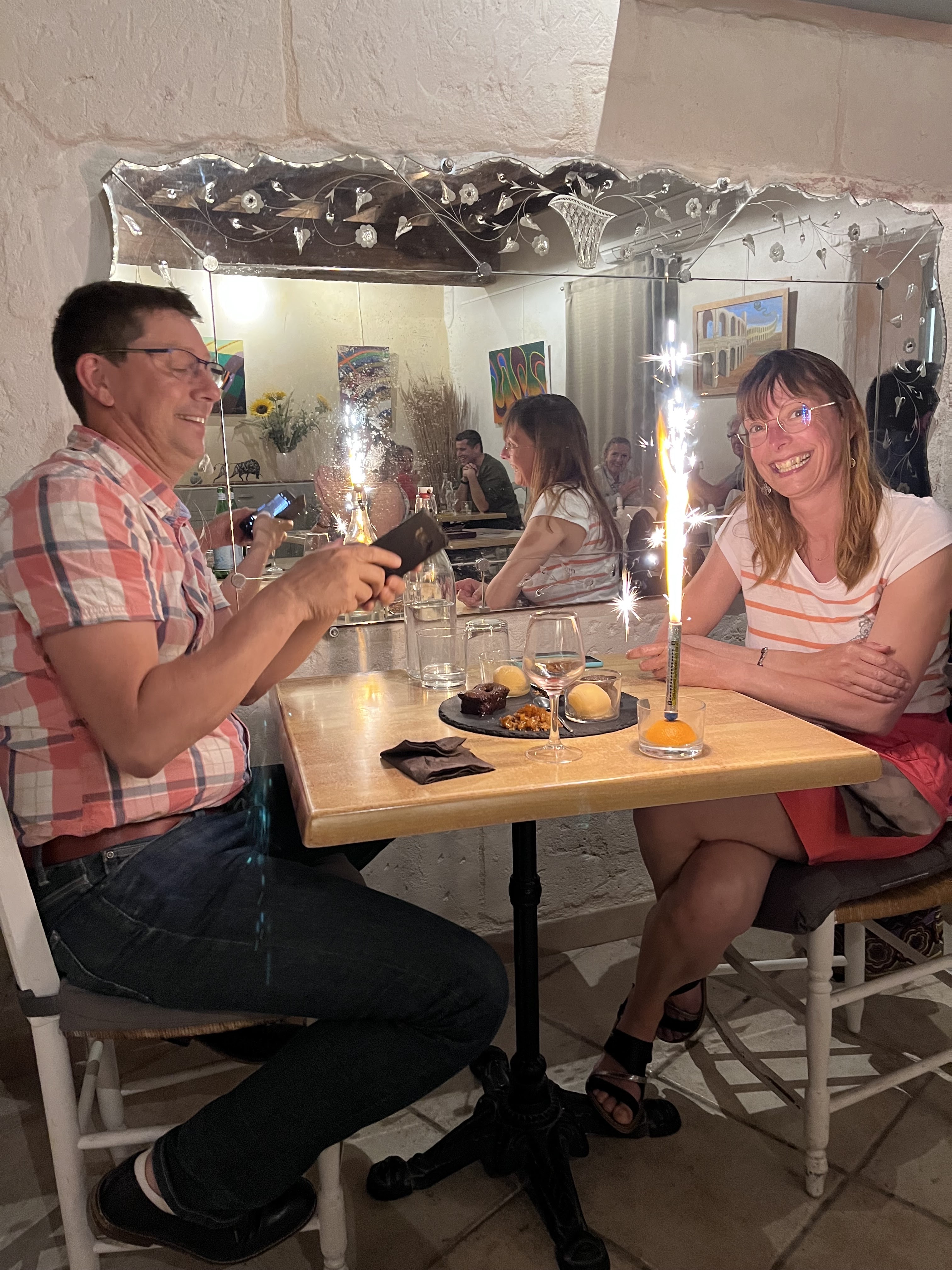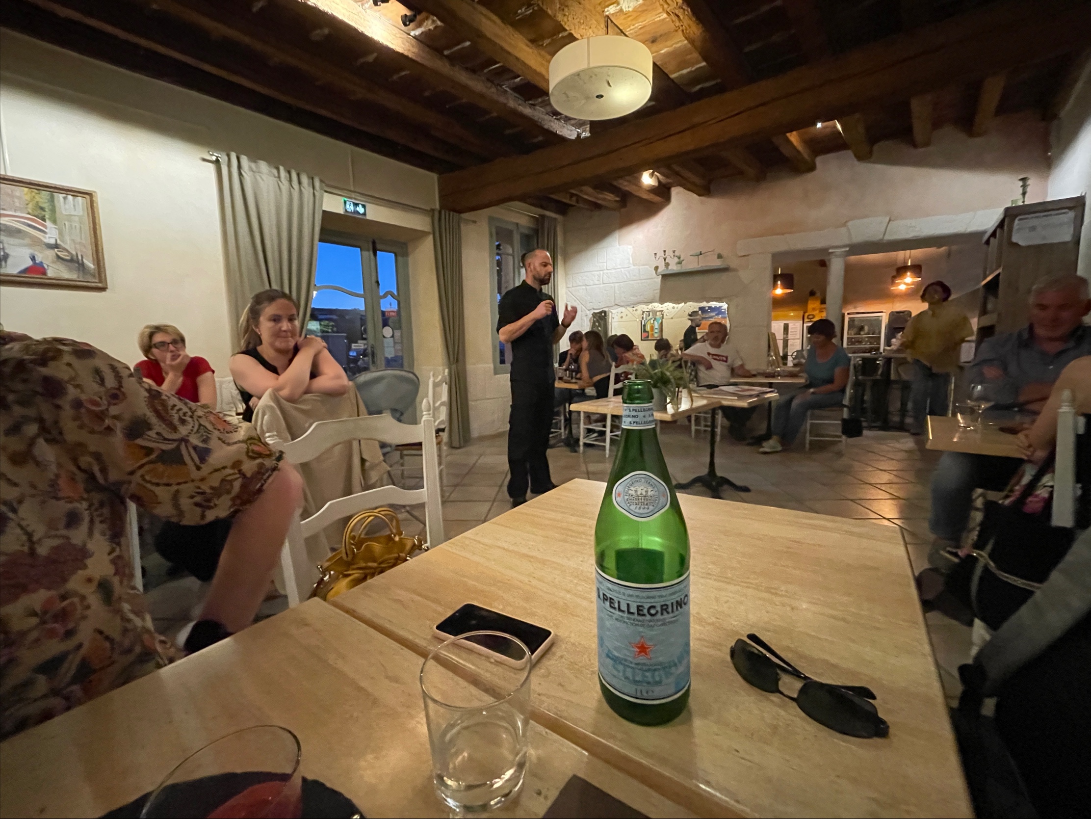 C'était l'expérience culinaire dont nous rêvions pour notre voyage à Arles. Kevin, le chef, serveur et hôte, a préparé un repas sincère et délicieux. Il a présenté et expliqué chaque élément de chaque cours en français pour la plupart des invités et en anglais pour notre bénéfice. L'ensemble du repas, de l'entrée au dessert, a été sélectionné et conçu par Kevin, pour inclure, à notre demande, des accords mets et vins appropriés. Tout était merveilleux, la nourriture, le cadre pittoresque du restaurant, même les autres invités, y compris un monsieur célébrant son anniversaire. Nous nous sommes assis à 20 heures et nous nous sommes amusés jusqu'à 10 h 30, une soirée inoubliable. Merci Chef Kevin, l'expérience culinaire que vous nous avez offerte restera toujours dans les mémoires.