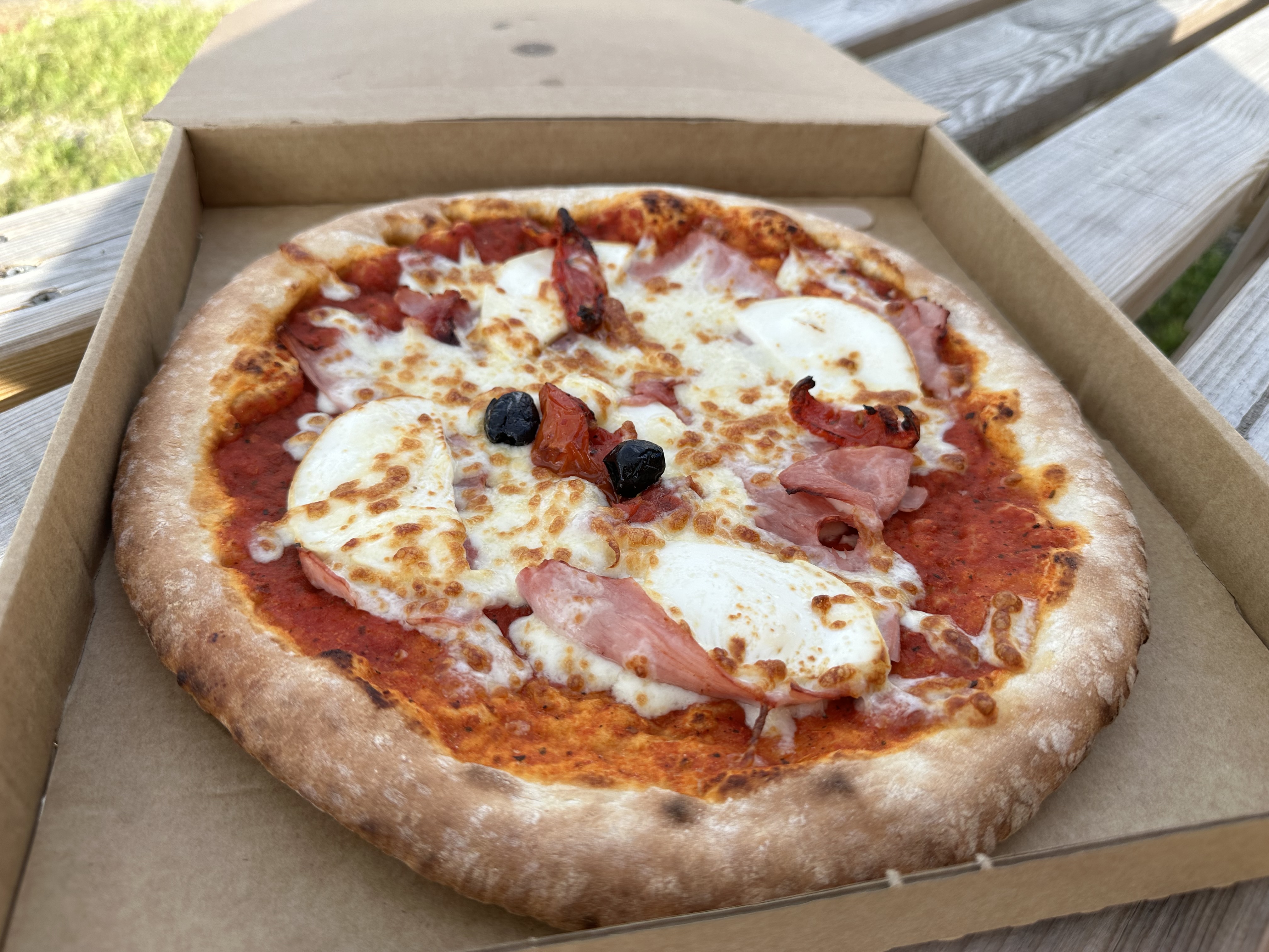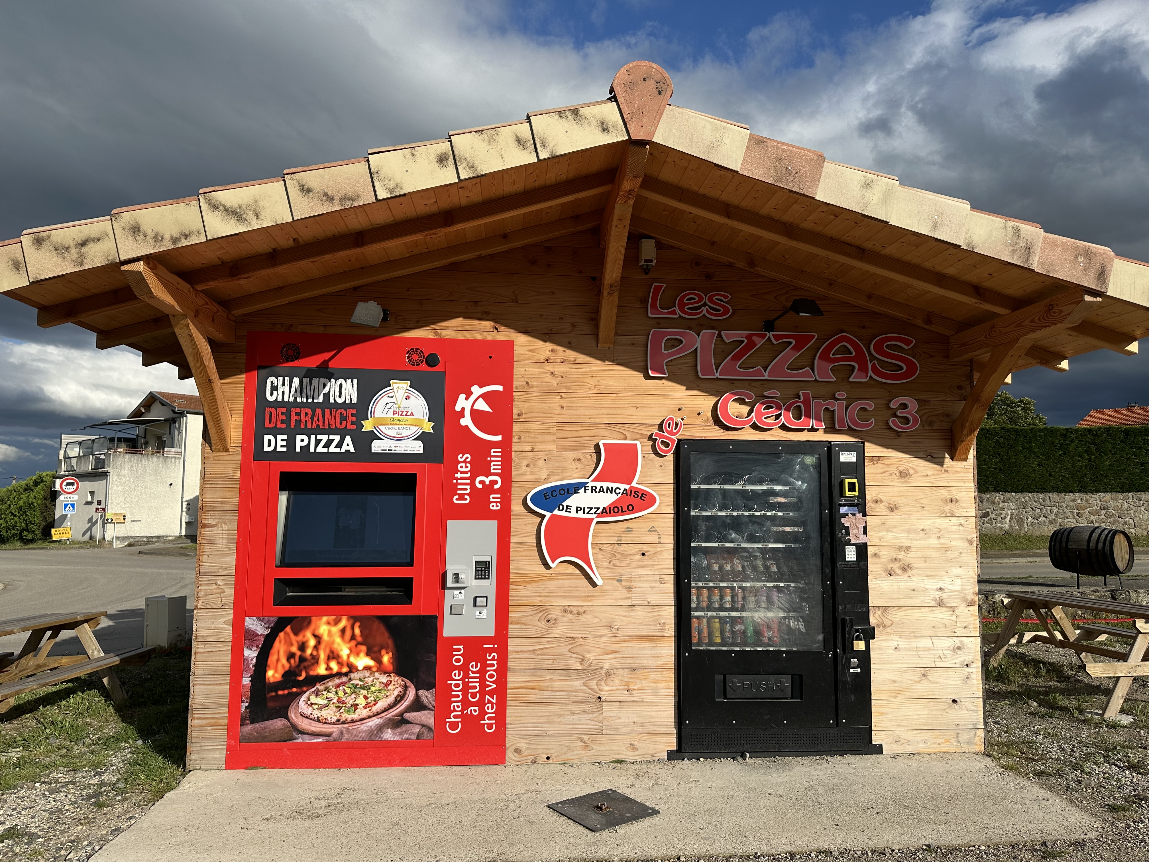Les pizzas ne sont pas mauvaises mais c'est clairement pas les meilleures. Niveau tarif c'est cher pour une cabane où il n'y a personne qui boss et avec qui discuter le temps que les pizzas soient prêtes... ou comment réduire encore nos échanges sociaux. Quant au placement... Ben y a le commerce de proximité (Proxi) qui avait investi pour faire des pizzas pour diversifier un peu son activité et essayer de survivre. Résultat ce dernier est en vente... Plus un camion pizza qui est à 15 metres depuis des années.