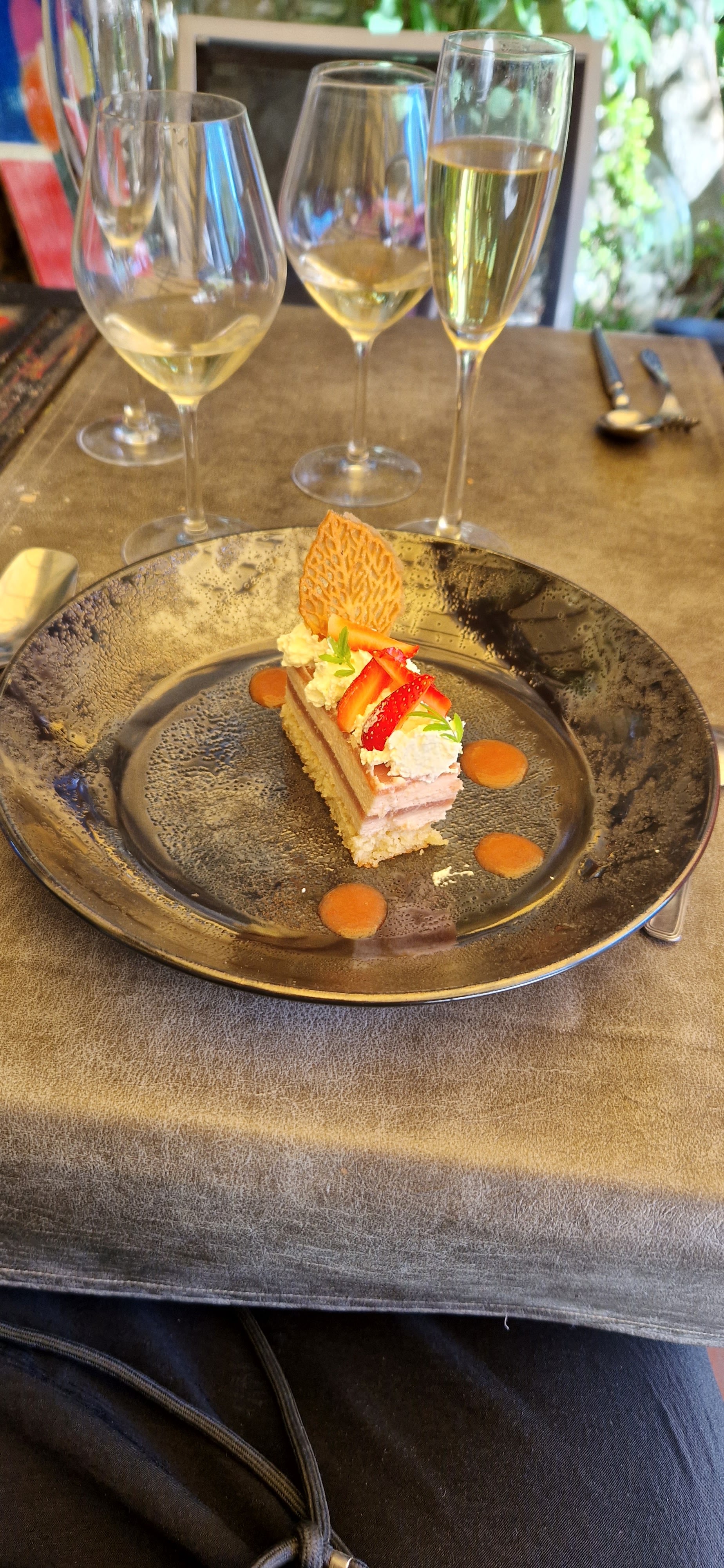 Encore une très belle expérience avec ma fille hier au soir. Découverte du patio qui a été crée de toute pièce par Pierre et Léa pendant le confinement, des passionnés de leur métier jusqu’au bout. Le foie gras à la rhubarbe était un délice, et le dessert chocolat chantilly nougat exceptionnel. Comme d’habitude une merveille pour les papilles. Ma fille n’aurait pas voulu avoir fait 1200km sans avoir le plaisir de venir manger chez vous. Merci de nous avoir accueilli si gentiment, ne changez surtout rien. À très vite