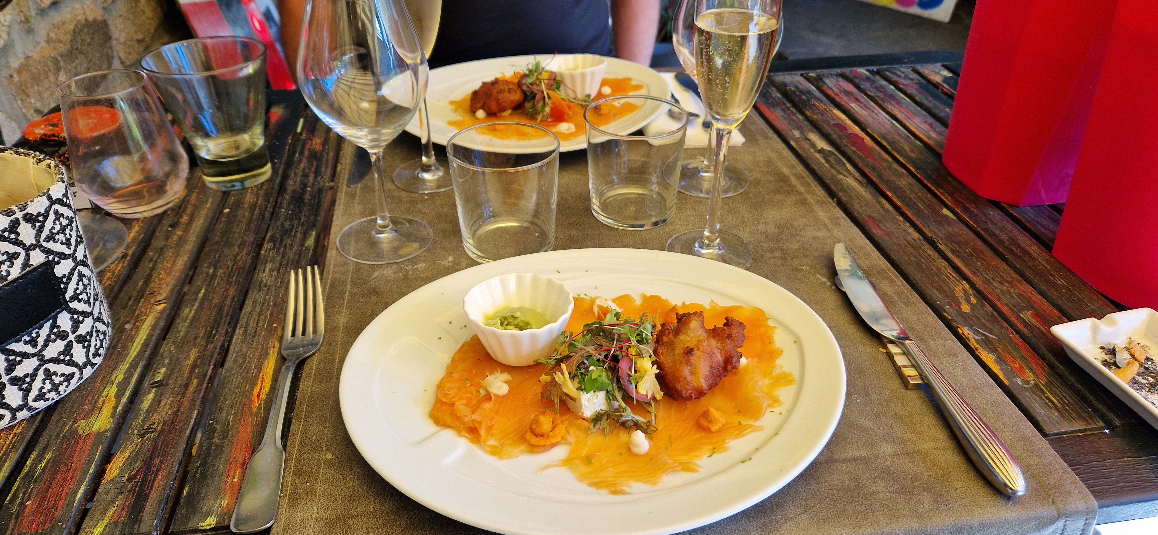 Cuisine très raffinée, cadre agréable, une belle découverte après une marche parmi les alignements des alentours. Une mention spéciale pour le saumon fumé et bien sûr les glaces maisons !