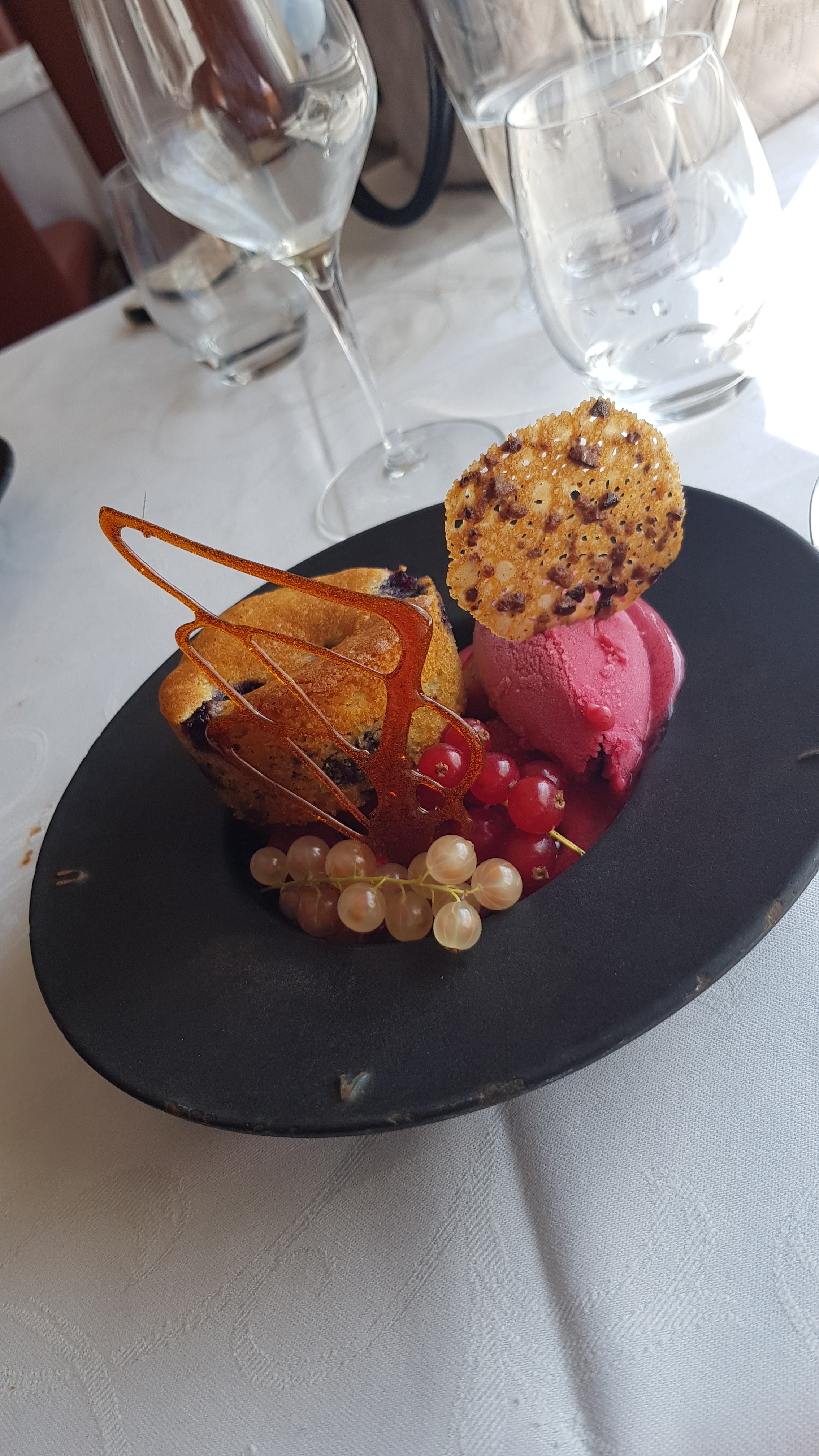 Super restaurant. Service impeccable et sympa, et plats fantastique s. Je retiens le dessert : soufflé chaud à la sauge...une tuerie.